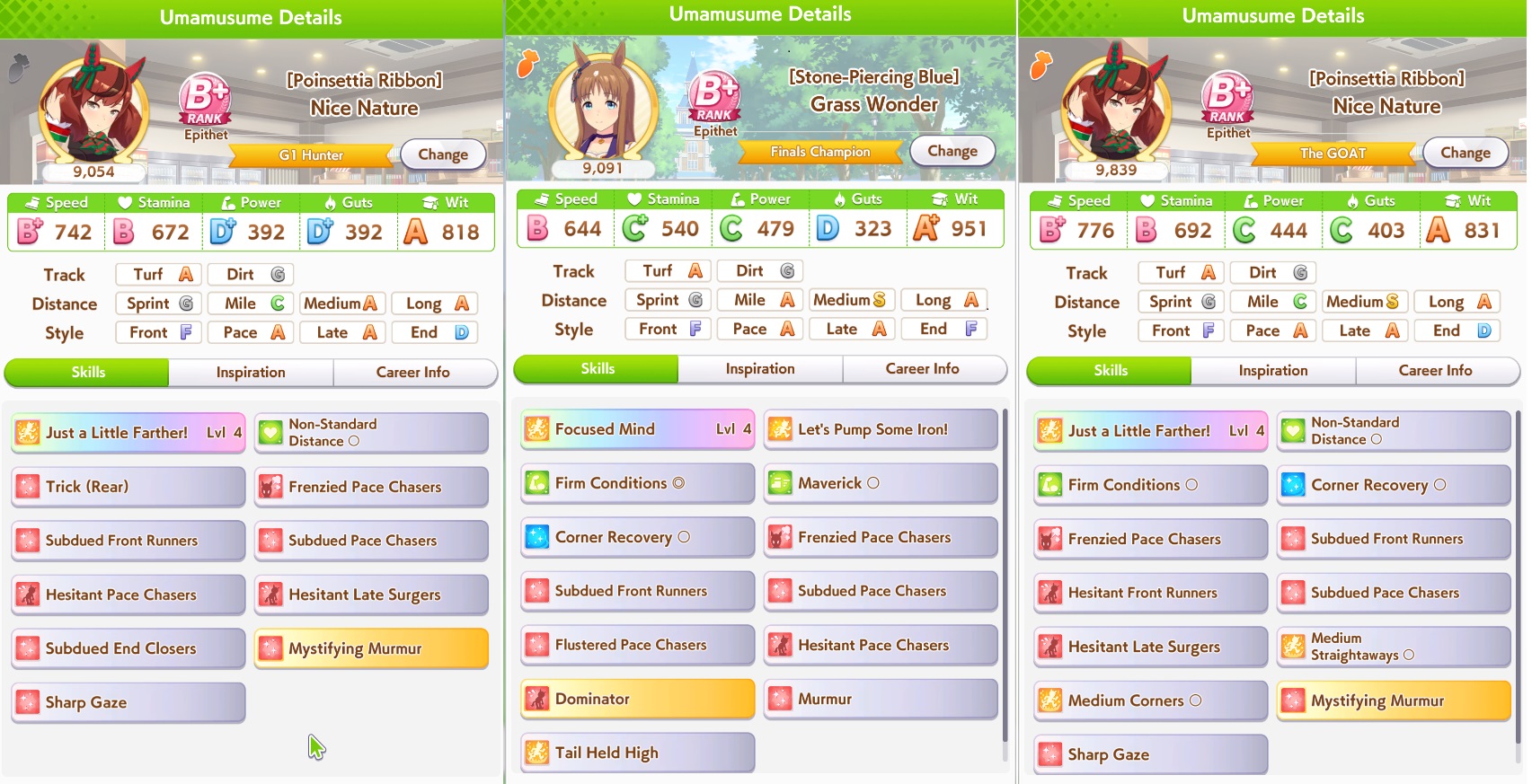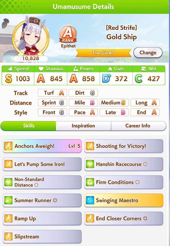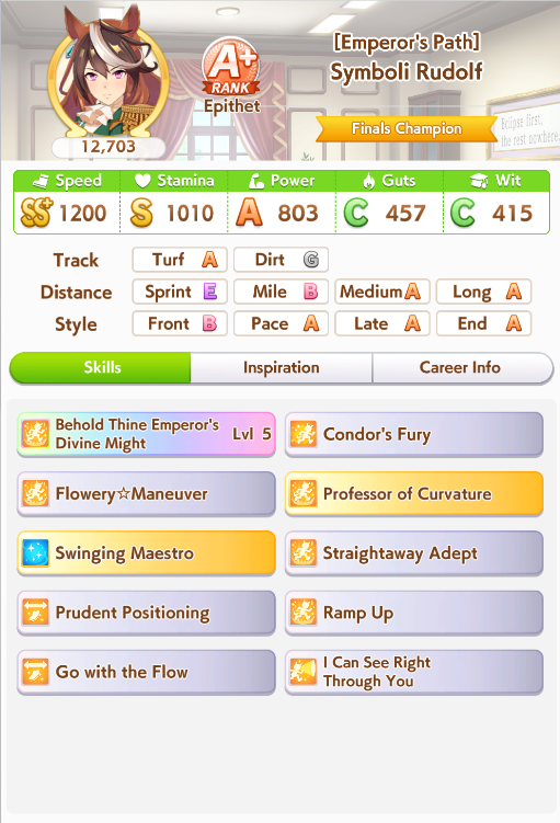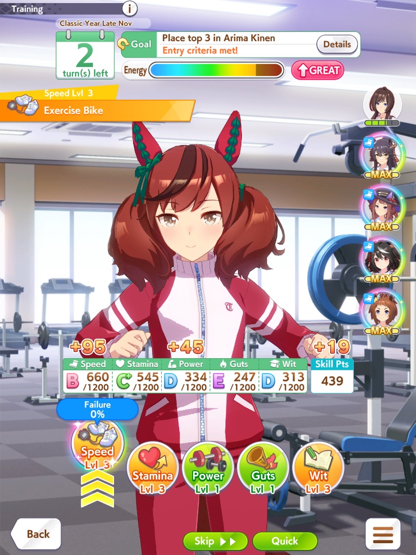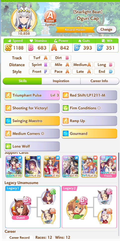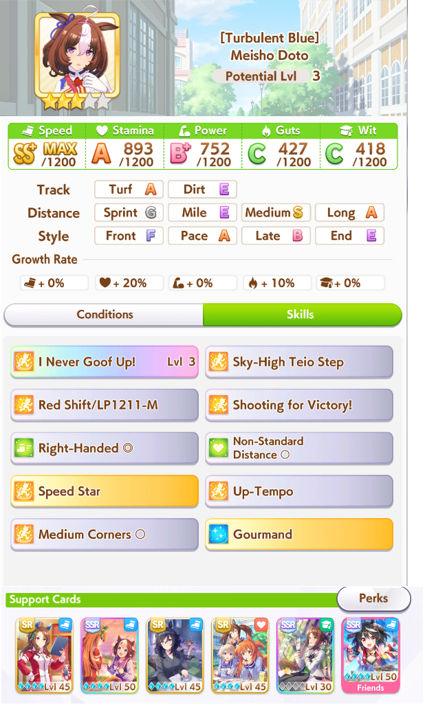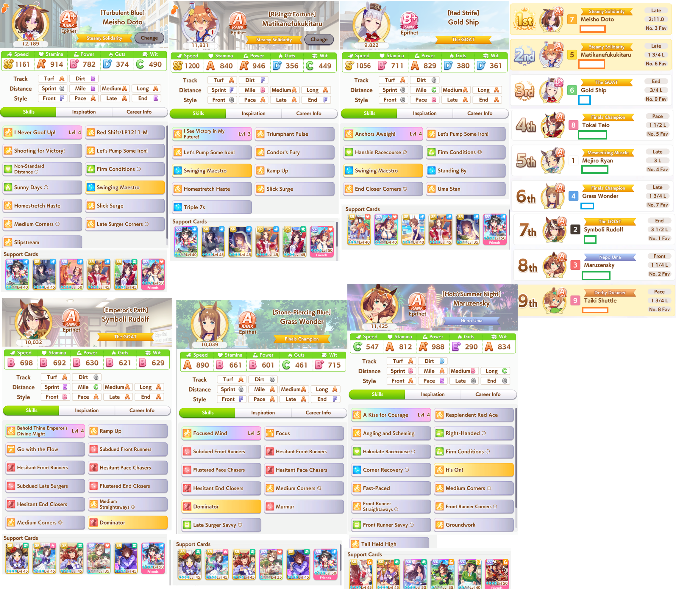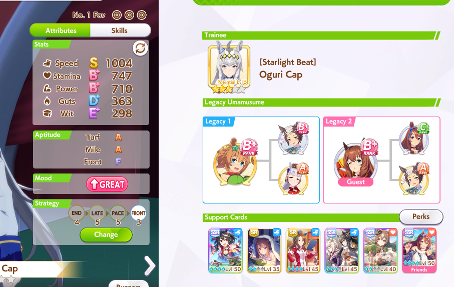 >>544533245>>544533613if you're struggling to hit 1200 spd bring 5 speed cards, one 9* stam borrow, borrow mlb super creek, and bring whatever your own best power spark is. you'll be able to hit 1200/800/~800-900. none of my gold ship runs were hitting speed cap until I did this