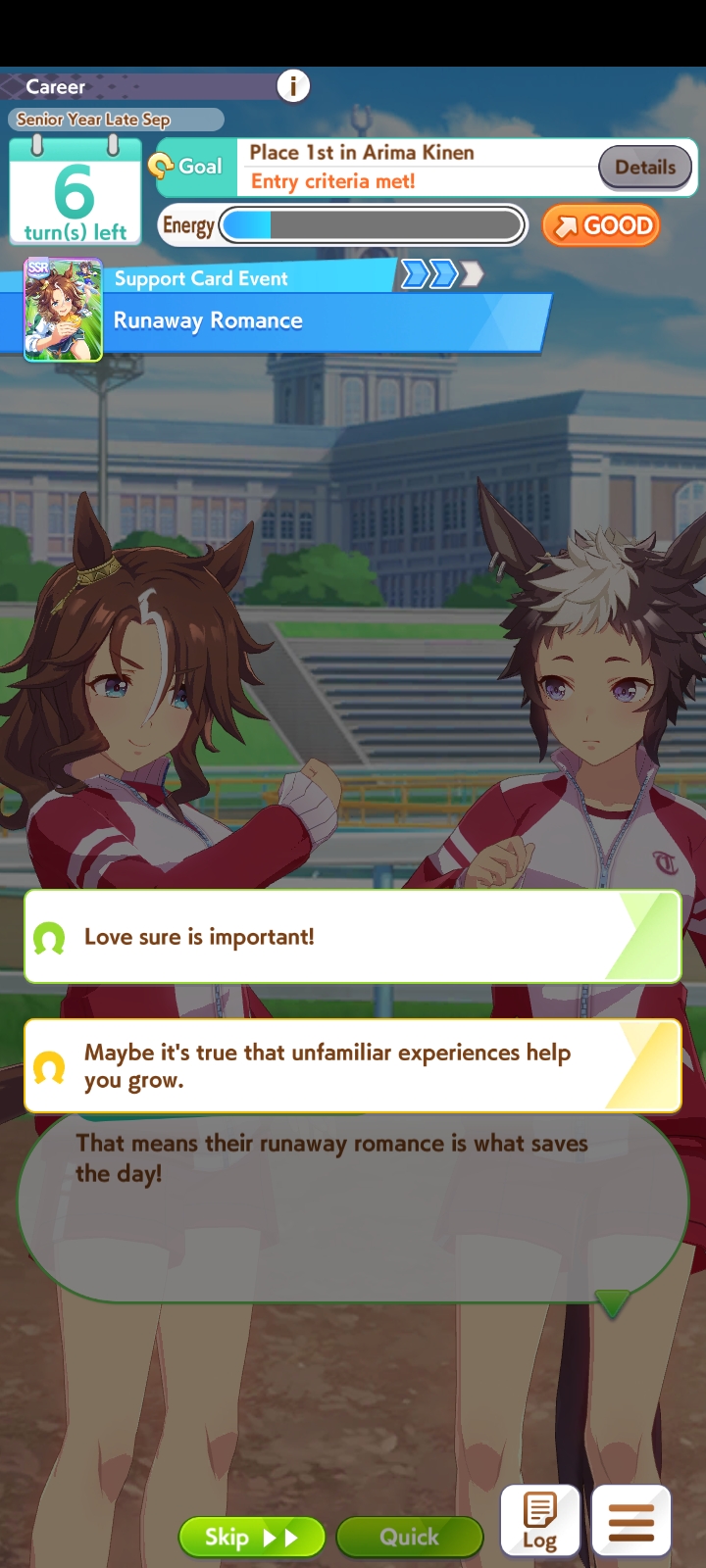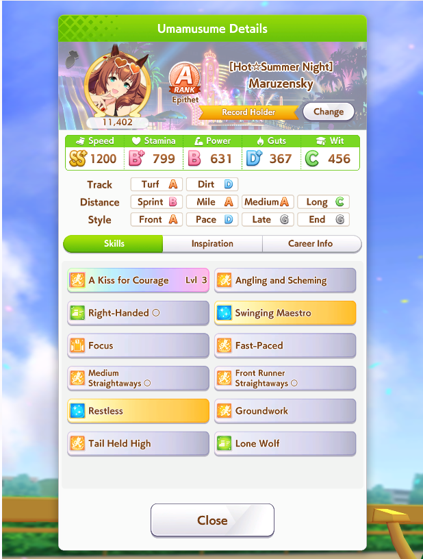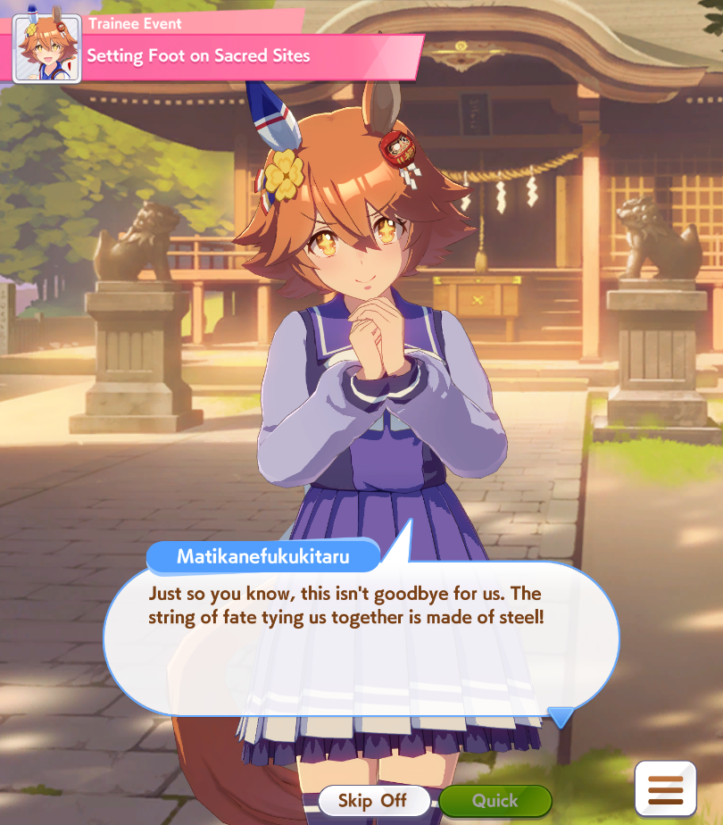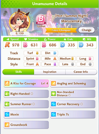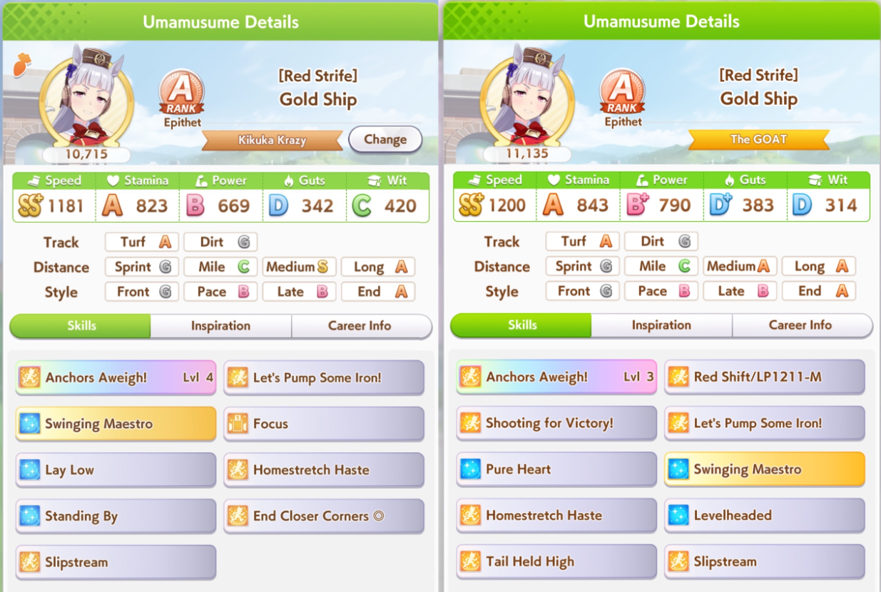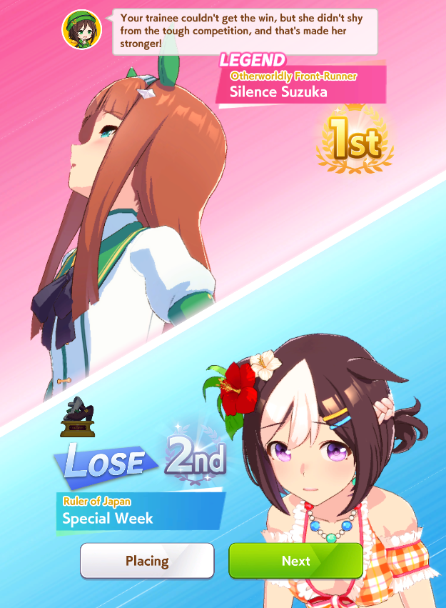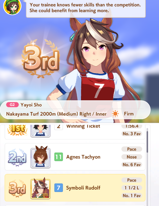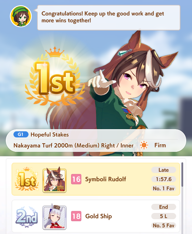 >>544533169are you sure +10 to all stats + 2 mediocre skills is even worth it?her rival has decent stats + 1 working power green and 1 gold and 1 normal velocity skill so winning the race is kinda coinflippylike if you lose the race the run is just over due to doto needing to do like 3 extra races to hit 70k fans