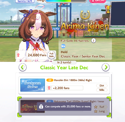 >>544532723>Kyoto Junior Stakes>Satsuki Sho Skip derby, go for her secret event. If you feel confident in your stats, try going for Arima year 1 for 100k fans.