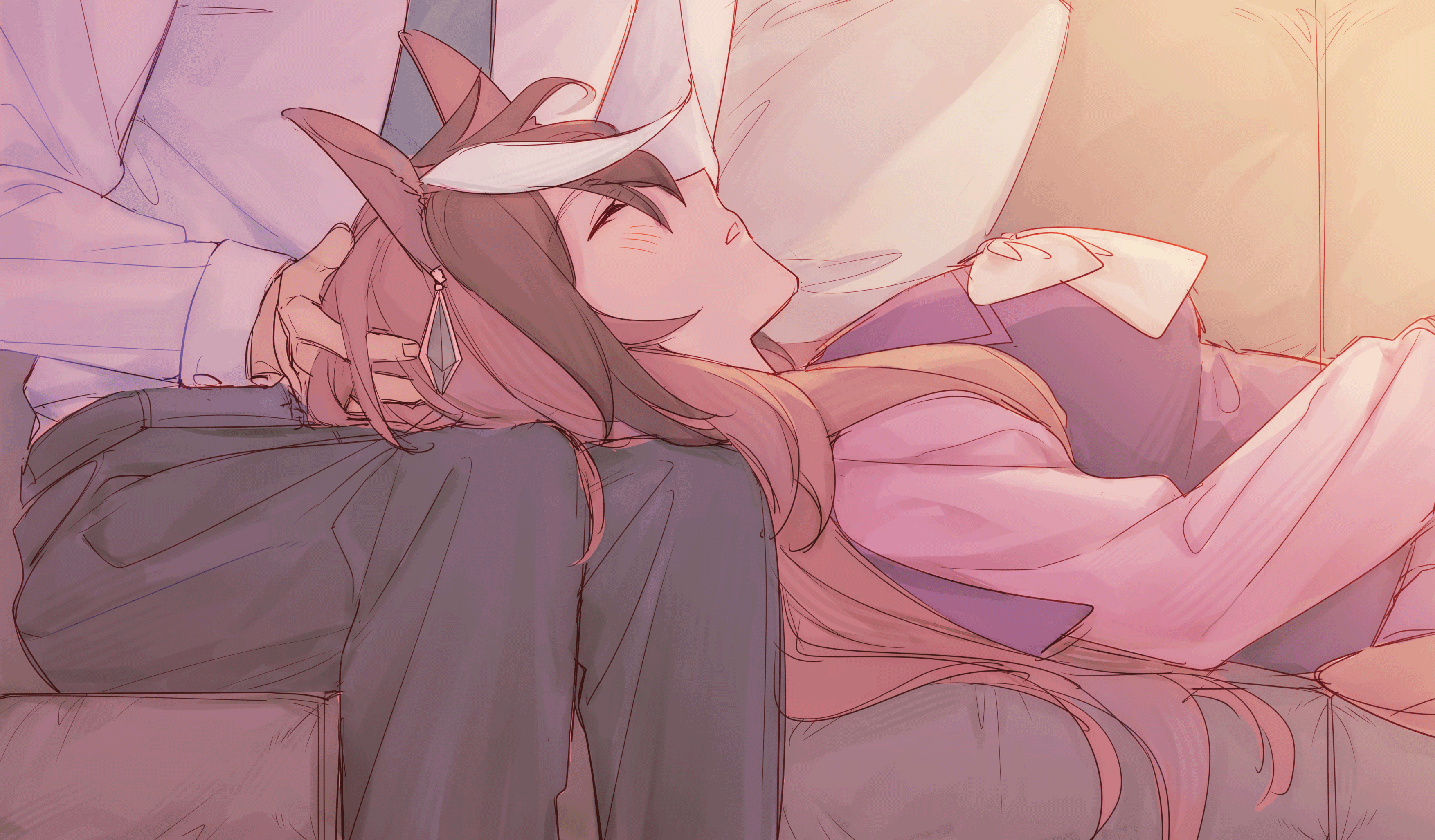 After enjoying an exciting Christmas together, the trainer fell asleep, exhausted.Machitan gazes intently at the trainer's lips...