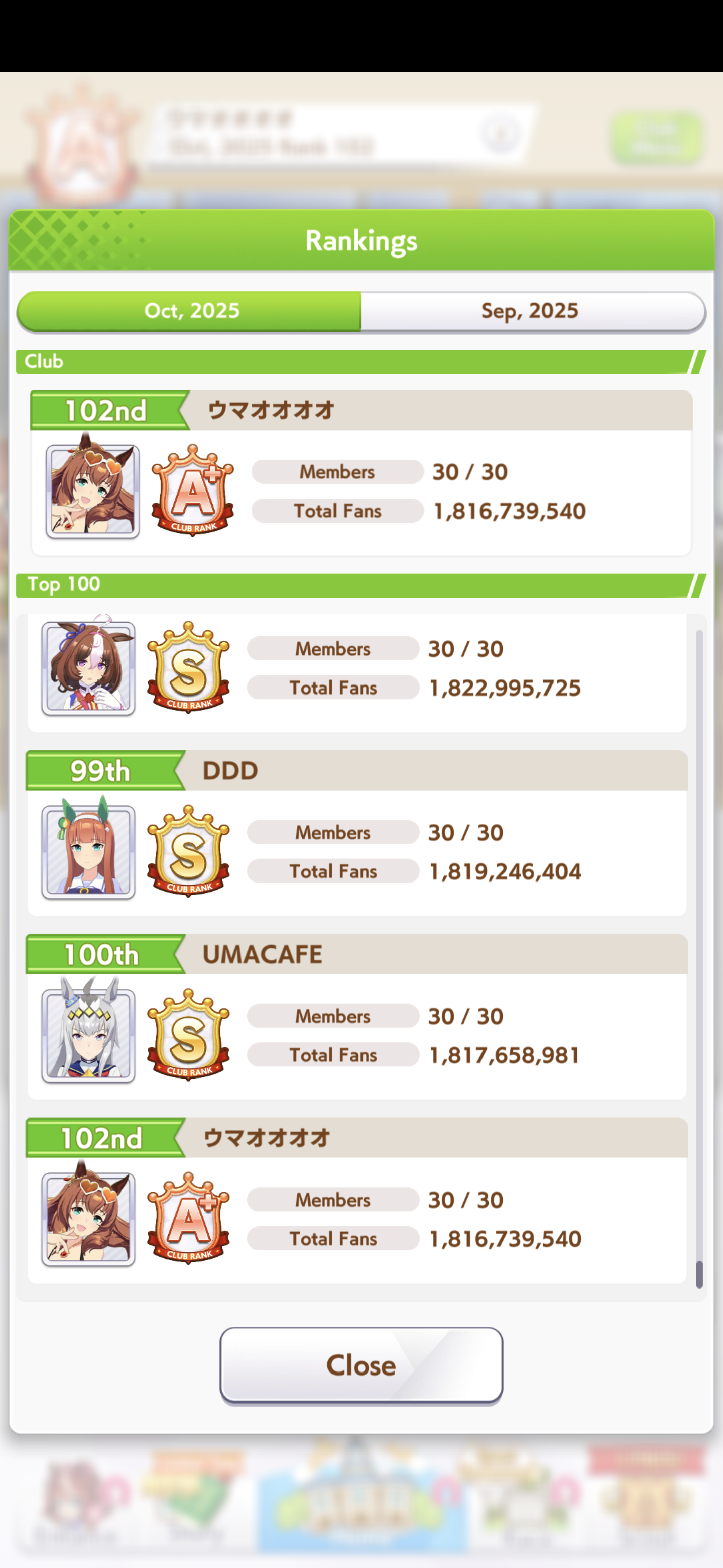 I'm a Day 1 player who never joined a club.With this kind of track record what kind of /uma/ club can I qualify for?