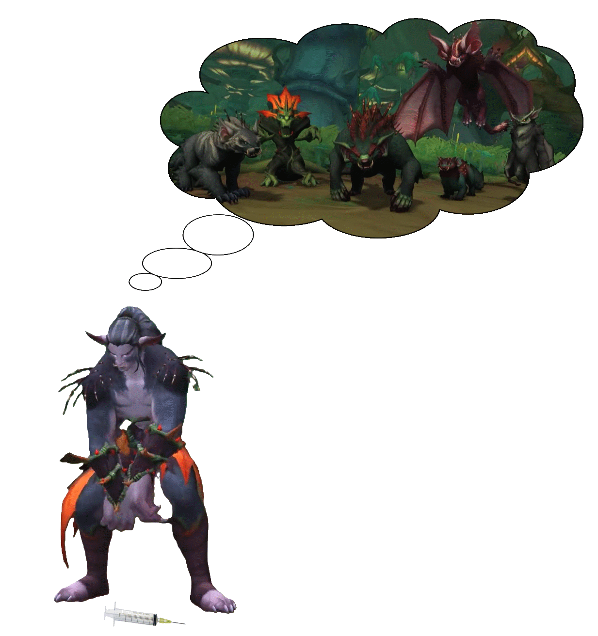 >>544556007>Meth Fel/Blood ElvesFel/Meth Offers tremendous power but consume the user from within turning them into husks and depraved parodies of their former selves.>CocaineArcane High/Highborne elves Arcane magic/Coke offers energy and displaces the need for food but users are subject to withdrawal but in general addiction symptoms are mild as long as use is maintained but tend to waste away due to neglect of healthy needs, focusing ever more on their usage an generally becoming ensnared by harder magic/drugs>Crack CocaineNightborneCrack Is a variation of the above but withdrawal is far worse and user tend to be more addicted and suffer more from withdrawal, denied access users become agitated, violent and often insane.>HeroinVoid Elves.Heroin/Void makes all your problems go away, replaces your reality with a trance but the cost is high. Addiction is total and inescapable death due to overuse is inevitable and users are easily marked by their unhealthy appearance and vacant need for more substance.>FentCheap knockoff HeroinHeronears total destruction of societal progress, users live to get high only utopia for these people is a shed with a chair and an endless IV.>DUDE WEED LMAONight Elves and TrollsNight elves are smelly hippies who think they've found enlightentment by getting stone in the woods and believe this "enlightenment renders then superior to all other drug users and also sober non users. Mostly Harmless but totally insufferable, sill take your shit when youre not looking to fund their enlightened unemployed drug habit.Trolls are Jamaican weed niggers.