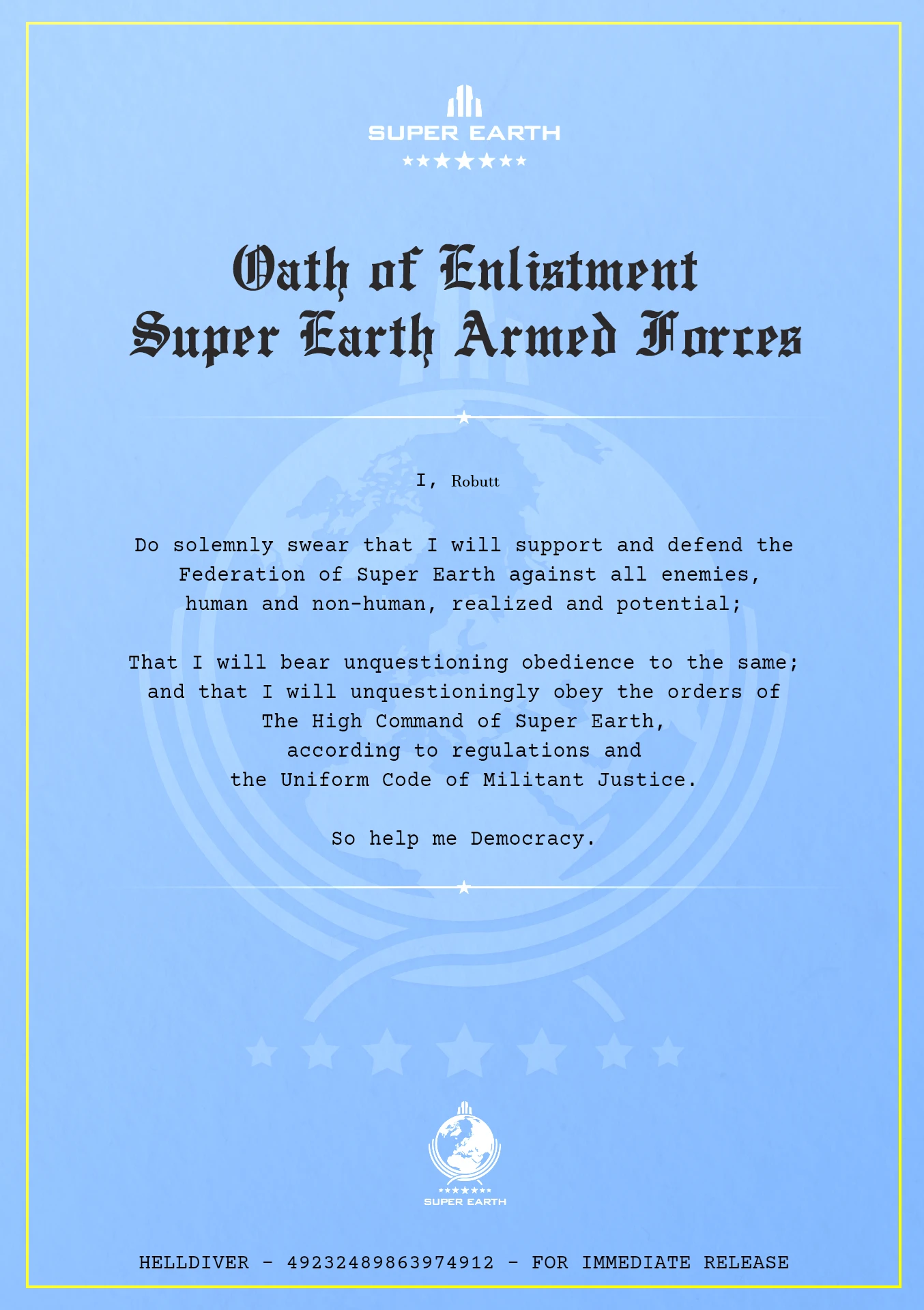 Rupture Edition>Previous>>544512348>WHAT IS HELLDIVERS 2?HELLDIVERS 2 is a 2024 crossplay, co-op, squad-based, PvE 3rd person shooter for PC, PS5 and XBox Series X/S where players fight against hordes of alien insects, robots and squids to Spread Democracy™. Players wage war on contested planets, each with a different biome, completing as many objectives as possible in a procedurally generated level while constrained by a time limit. With enough successful missions, a planet can be defended or liberated, and the player base must combine their efforts as much as possible to Liberate™ the galaxy.https://store.steampowered.com/app/553850/HELLDIVERS_2/https://www.playstation.com/en-us/games/helldivers-2/https://www.xbox.com/en-us/games/store/helldivers-2/9mx9wn9dfpgt>WHAT ABOUT THE FIRST HELLDIVERS GAME?Released in 2015 for PC, PS3/4 and PS Vita, the original HELLDIVERS is a shared screen top-down shooter in the same setting. Its mechanics were based primarily on Arrowhead's first game, Magicka.https://store.steampowered.com/app/394510/HELLDIVERS_Dive_Harder_Edition/https://www.playstation.com/en-us/games/helldivers/>LOBBY HOSTINGhttps://files.catbox.moe/83ixkr.png>MODDINGhttps://files.catbox.moe/c81ogo.png>INFORMATION RESOURCEShttps://helldivers.wiki.gg/https://helldiverscompanion.com/https://democracy-hub.nethttps://helldive.live>MAJOR NEWSAug 26 ODST Warbond https://www.youtube.com/watch?v=gUC24yAP7SoAug 26 Into The Unjust https://www.youtube.com/watch?v=dJi8VsvnkoESep 04 Dust Devils https://www.youtube.com/watch?v=5L-UQQIFQhwOct 23 Patch 4.1.0 https://www.youtube.com/watch?v=OBW4NumlYHo>LATEST PATCHESOct 23 1.004.100 https://store.steampowered.com/news/app/553850/view/538868565209514366