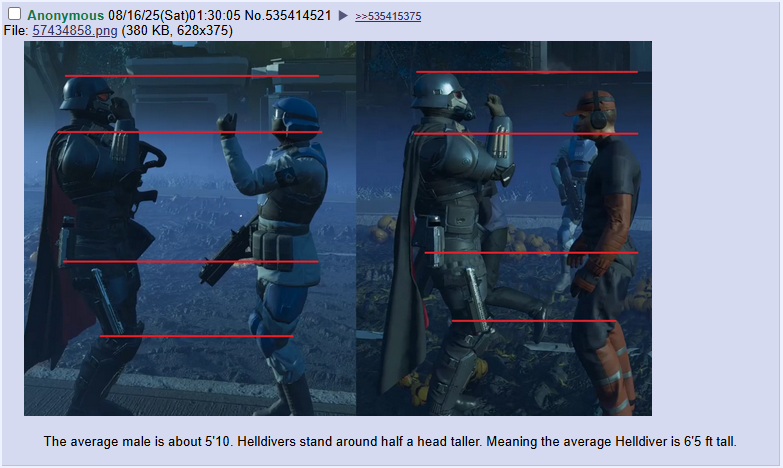 >>544613317>they said they changed roach health to 4000they said they changed the wings to 4000, not the whole thing>Little did I know they two stage roach HP which made spear useless for killing it. excess damage blows right through bleedout HP. if it didn't then the RR couldn't one-shot factory strider bellies or the deadeye couldn't one-shot voteless with a chest shot>Same goes for constitution, fucked by the health increase of overseers.the only part that got an HP increase was the head of flying overseers, but you're forgetting they also lowered the armour of the helmet. Before the patch the constitution did 117 damage to the 150 HP head because the head had 3 armourafter the change it does 180 damage to the 200 HP head. It took two shots to headshot flying overseers before the change and it takes two shots to headshot flying overseers after the change.I'm sorry but you're just getting shit wrong and complaining about it or imagining shit to complain about