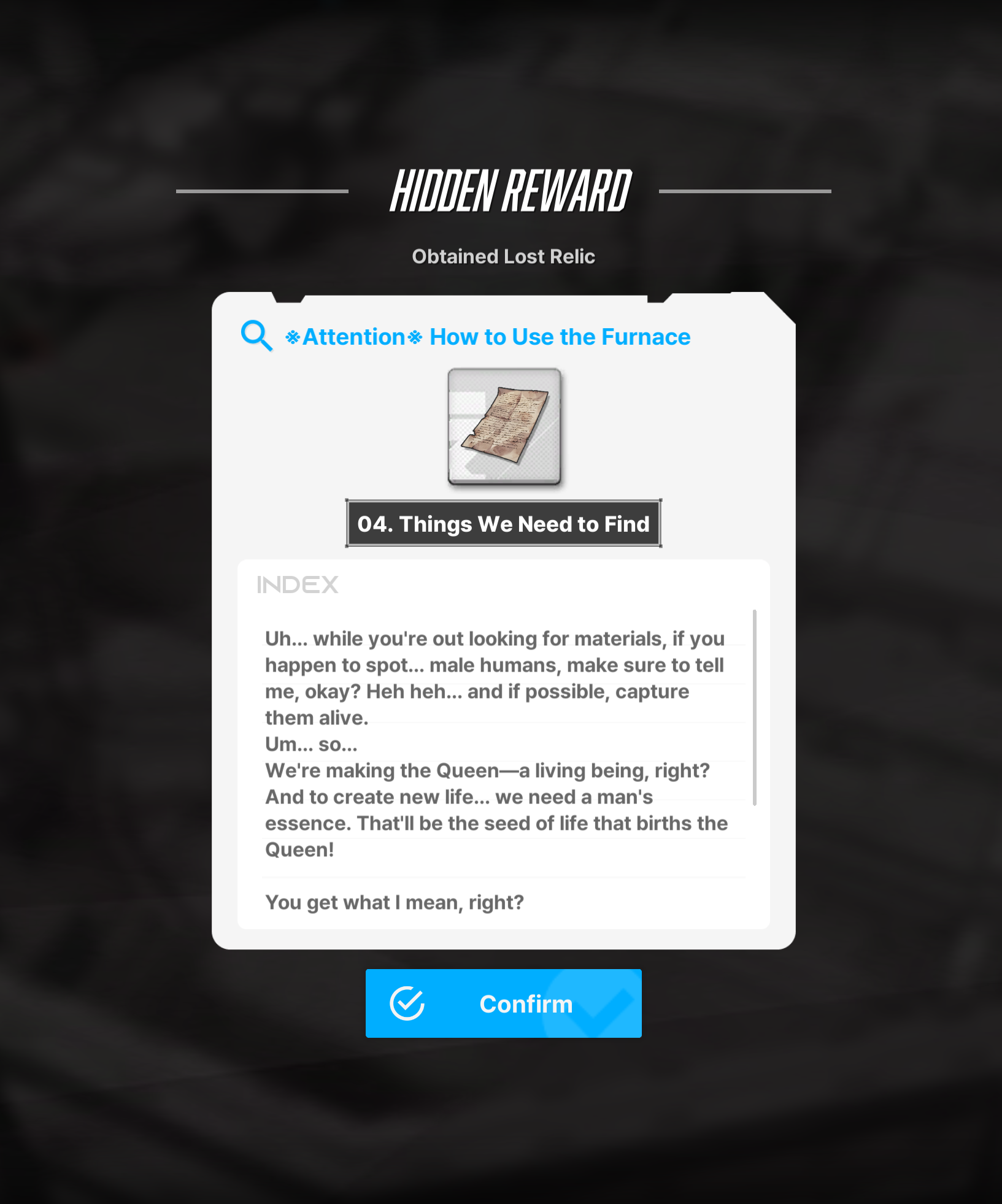>>544585601>>544585603>>544585716>>544585981>>544586001Tourist scum, and yuri shit defenders. It's over. Not only did SKK not earn Levi's trust before Siren arrived (making the progress of chasing her down and trying to gain her trust for 6 chapters entirely pointless and redundant), but they also did a romcom gag comedy with Siren, Mori, and SKK, where SKK was basically congratulating Mori on her new girlfriend, and Siren stopped Mori from hyper-talking about it. I am fairly certain I have seen this exact dialogue flow in other places as well. Well, anyway, this is garbage and Nikke has lost its identity. I am done. I guess three years, and this game turned into another shipshit. I played this game since it was straightforward harem pandering, and it's slowly eroded that away. This was the last drop.