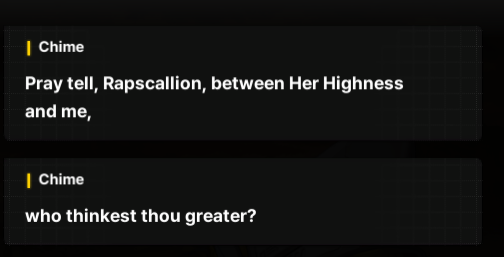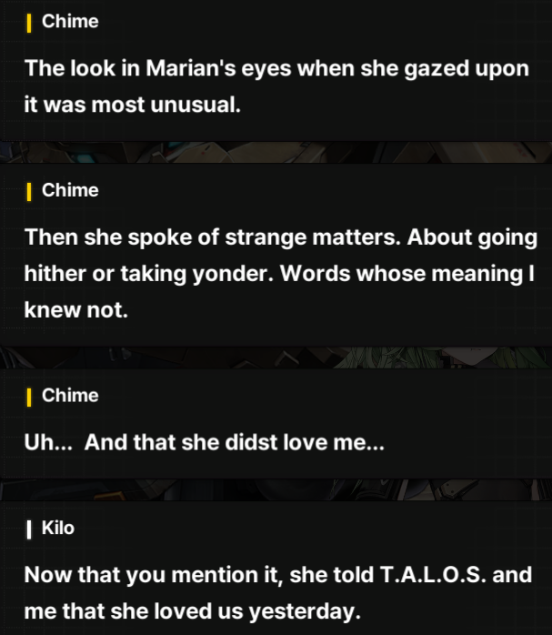 > Load up game after updating for two hours> Immediately start doing Chime's storyTell those lazy dumb bitches, Chime. You rule.