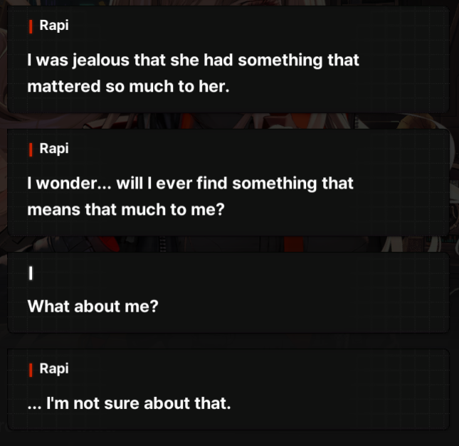 The loli Rapi daughter shit will kill the game. It will destroy all future counters and Rapi interactions. And even with other nikkes, it turns skk into a scumbag for cheating on her wife and daughter. You DONT give daughters to shonen protagonists even less in a gacha game about collecting girlsIm 100% sure they are speedrunning the content because prijects spirits is releasing in 1.5 - 2 years max