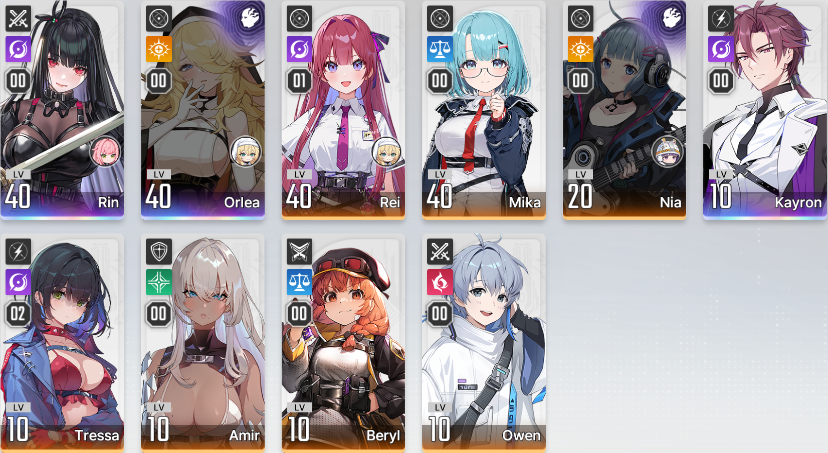 >>544590002>>544590073>>544590117Well this is my current roster. I wouldn't mind Rei/Mika dupes I guess. Or another 5*. I was thinking of saving them for when Haru goes into standard but I'm not sure now. I'm not having fun with Orlea.