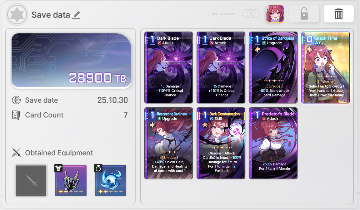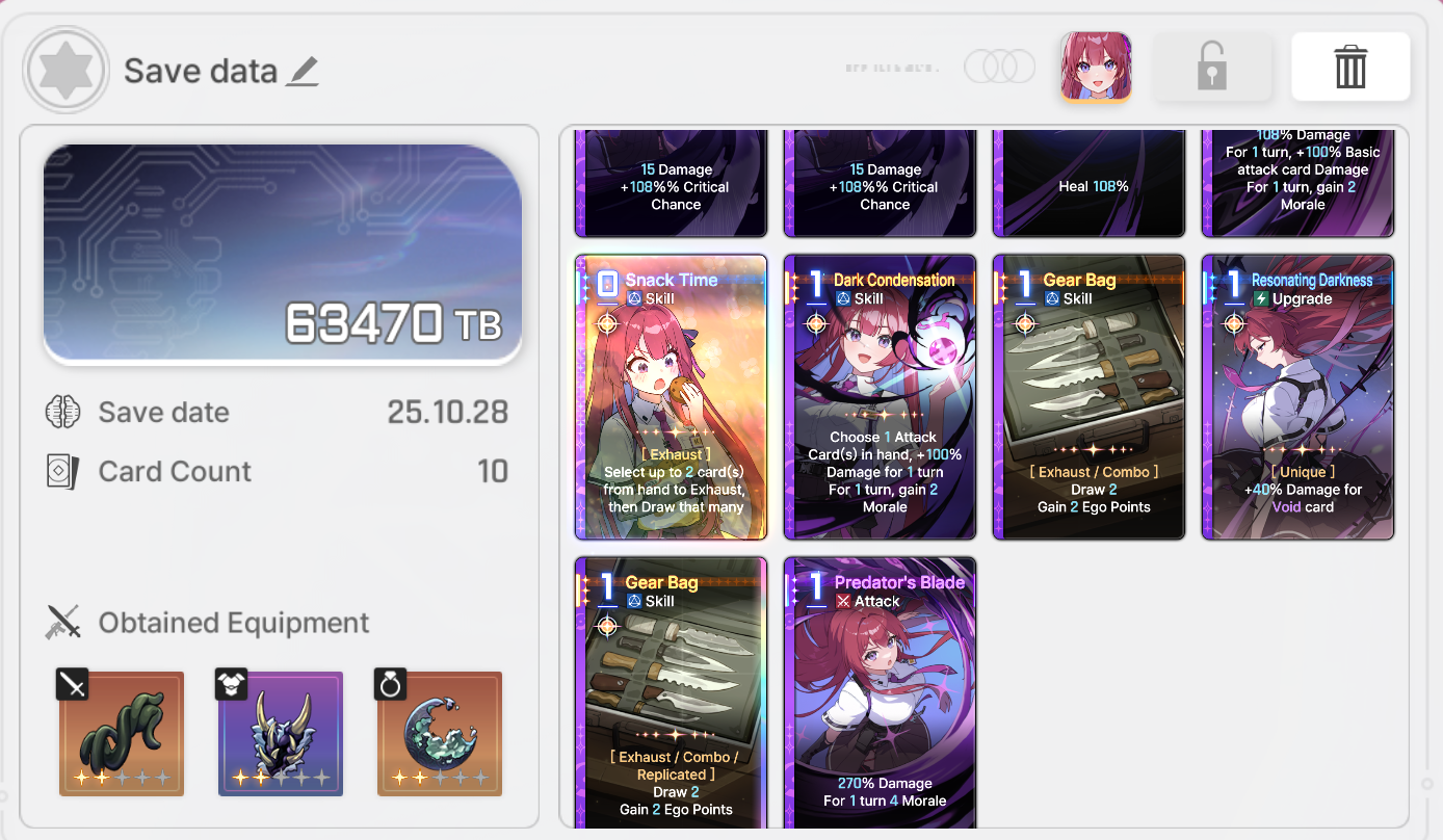 >>544588879Your deck was lost anyways, whether you die to a mob or finish the run your deck is still constrained by save data.