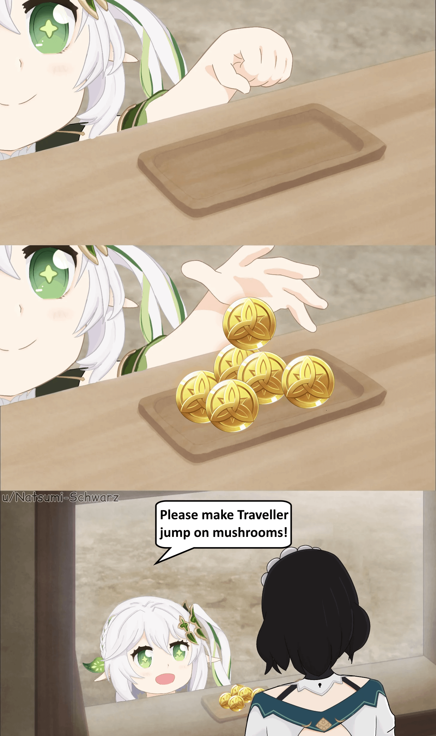 Previous: >>544548987>Character Trailer - "Nefer: Shadowbearing Serpent"https://youtu.be/jcFd1qbRg_I (EN)https://youtu.be/hDktaZmrzn4 (JP)>Character Teaser - "Nefer: An Inevitable Inconsistency"https://youtu.be/egKU8L59cCQ (EN)https://youtu.be/ohV402u_eGE (JP)>Character Anecdote - "The Gem Scam"https://youtu.be/46q9MNa50Yo>Miliastra Wonderland: Version "Luna II" Legendary Set Trailerhttps://youtu.be/nZA0vvO6EbU>Version "Luna II" "An Elegy For Faded Moonlight" Trailerhttps://youtu.be/w50jW_iEXns (EN)https://youtu.be/x-8hTneUDlY (JP)>5th Anniversary Theme Song: "The Long Way Home"https://youtu.be/OvHwco4OxDo>Current character banner: Nefer, Furina, Collei, Xingqiu, Yaoyao>Current weapon banner: Reliquary of Truth (Catalyst), Splendor of Tranquil Waters (Sword)https://www.hoyolab.com/article/41848209>Daily check-in rewards (permanent)https://webstatic-sea.mihoyo.com/ys/event/signin-sea/index.html?act_id=e202102251931481&lang=en-us>Redeemable Codes with Primogems (all regions): https://genshin.mihoyo.com/en/giftGENSHINGIFT0FQBAJNXCUFUEPIC2025MBEYNDLU3WGZ (NEW; *gives Geodes, not Primogems)R4SCAU7CR1G9>Useful Links (Wiki, Simulators, Maps, Character Builds, /gig/ friendlist, Third-Party Tools, etc.)https://rentry.org/giglinks/gig/ OP pastebin (use this if making new thread):https://pastebin.com/ca0zseQ9