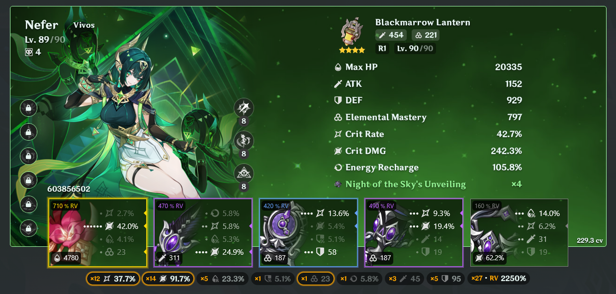 >>544610151Could have been worse you could have used a total of 156 rolls for c0 Nefer and 67 rolls for her weapon, an whopping total of 223 rolls