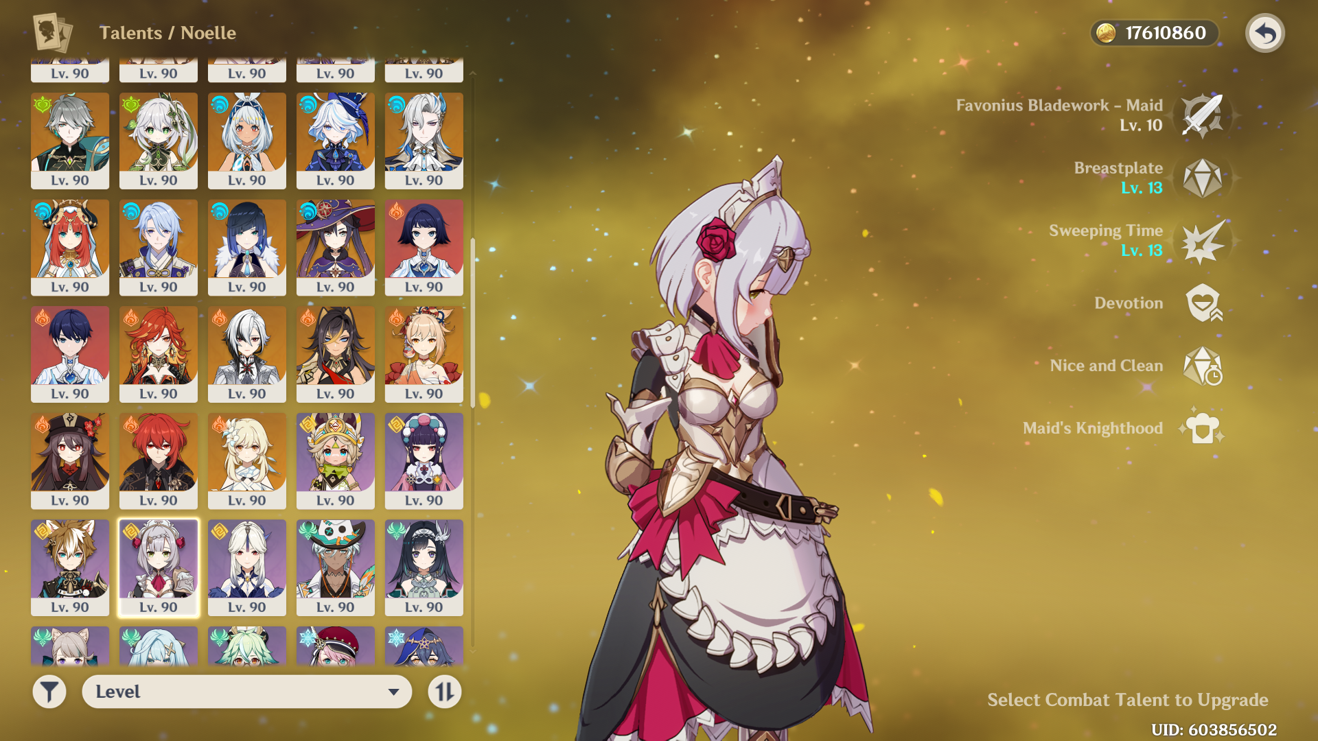 >>544611264>Any triple crowned characters?A few. Noelle, Father, Eula, Ningguang. The important ones. I have a number of others at 8/10/10 or 9/10/10, with 33 crowns on hand.