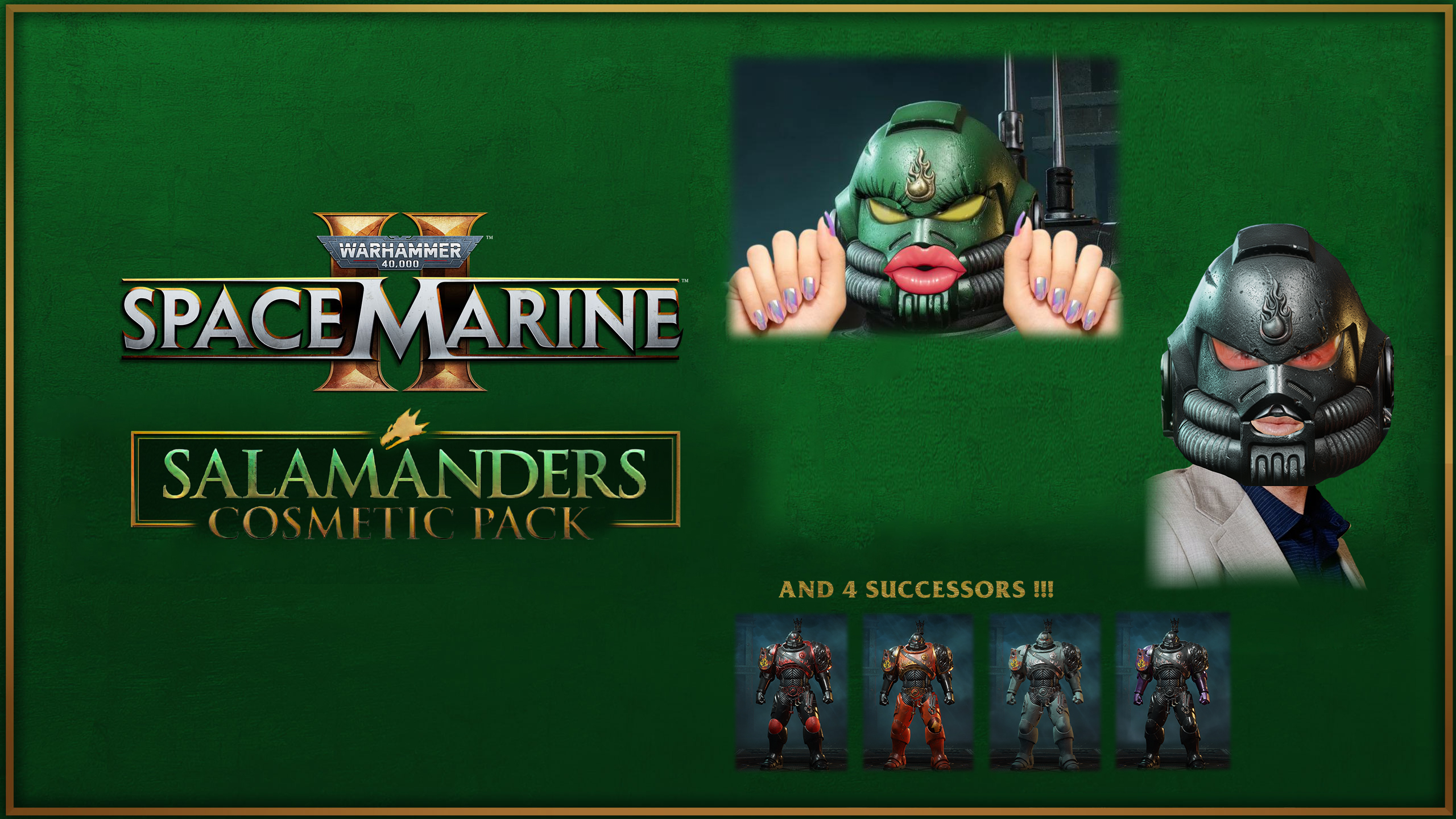 >>544624412If the Salamanders pack is anything to go by, I am not looking forward to future non-Champion skins.>Only four successors out of the five that are both confirmed and have visual representation (Black Dragons are just rumored / Storm Giants are already in and only suspected)>Only four armor pieces (alt helmet isn't an extra piece)>No chest plateThe Carcharodons and Raptors, being successors themselves, have nothing to pad the packs out beyond their own heraldry and armor parts.