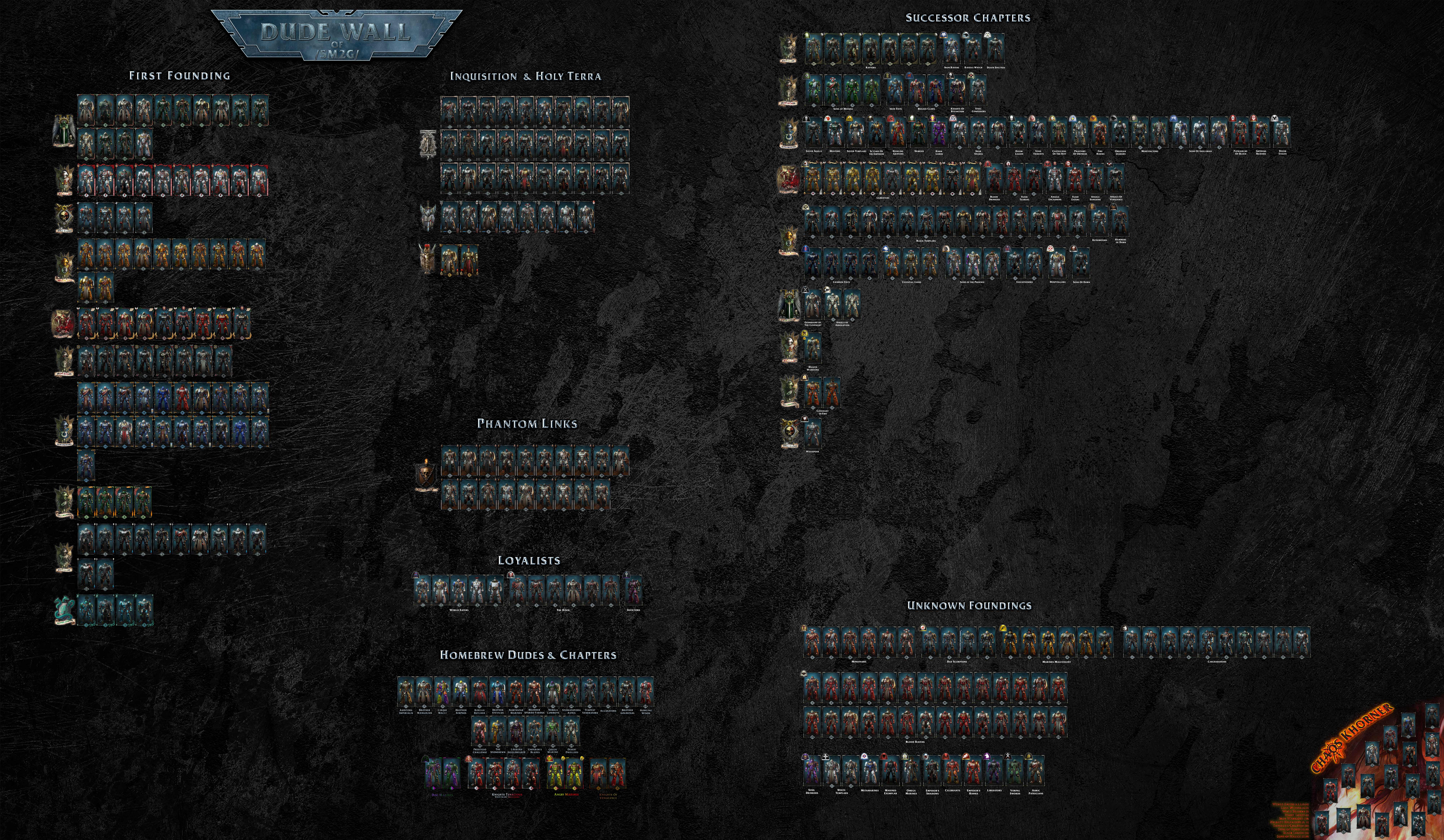 >>544626725>>544624793>Dark Angels Chapter Packx2 Helmetsx1 Chestx1 Left Shoulderx1 Champion Skinx2 Weapon Skinsx8 Successor Paint Schemes>Raven Guard Cosmetic Packx1 Helmet (w/ alt variant)x1 Chestx2 Shouldersx8 Successor Paint Schemes>Space Wolves Chapter Packx1 Helmetx1 Chestx1 Right Shoulderx1 Left legx1 Champion Skinx3 Weapon Skinsx8 Clan Paint Schemes>White Scars Chapter Packx1 Helmetx1 Chestx1 Shoulderx1 Champion Skinx3 Weapon Skinsx8 Successor Paint Schemes>Imperial Fist Cosmetic Packx1 Helmet (w/ alt variant)x1 Chestx2 Shouldersx8 Successor Paint Schemes>Blood Angels Cosmetic Packx1 Helmet (w/ alt variant)x1 Chestx1 Shoulderx8 Successor Paint Schemes>*New* Salamanders Cosmetic Packx1 Helmet (w/ alt variant)x2 Shouldersx1 Power Packx4 Successor Paint Schemes
