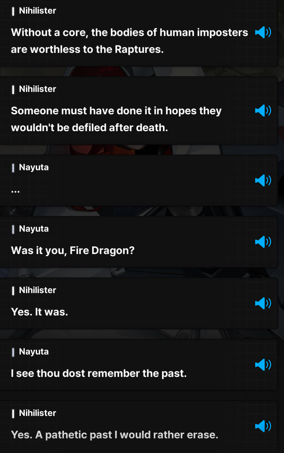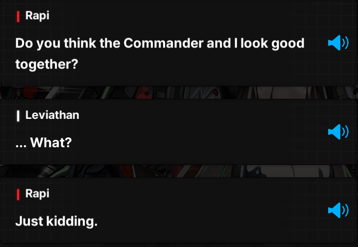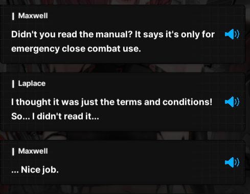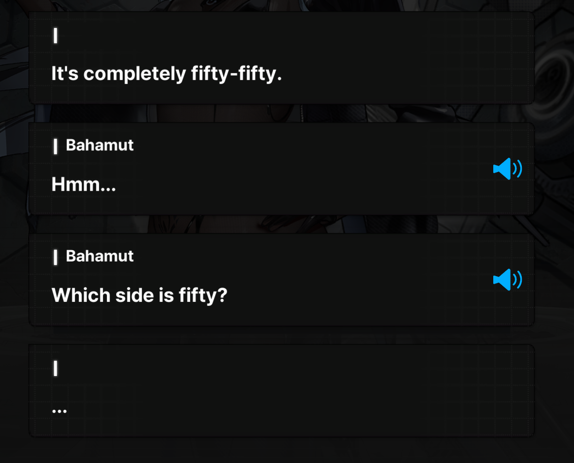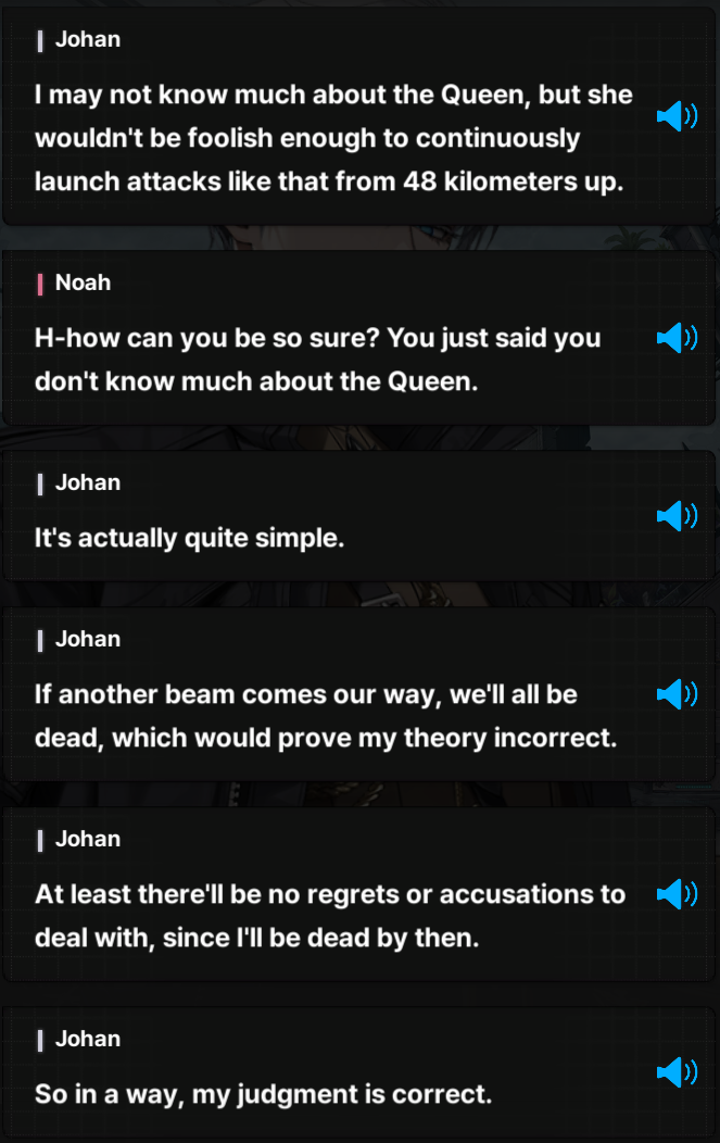 >wonder if i'll have to skip the event in order to not spoil myself again>the Queen is coming downwha->who i assume is "La Hermana de Scarlet" is talking shit when Eden gets FUCKING NUKEDi'll do my story reps eventually(ch25) but jesus fuck man, would it fucking kill the devs to put a spoiler warning over it already? why do the Side Stories get it but not Story Events? it also doesnt help that events are half detached and half canon to whatever the fuck is going on atm