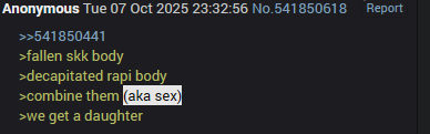 >>544610118Nikker that "daughter" that is literally a homunculus made by the Four Beasts got shipped off just like Marian to irrelevancy and Rapi is still going go be spilling her spaghetti around SKK.
