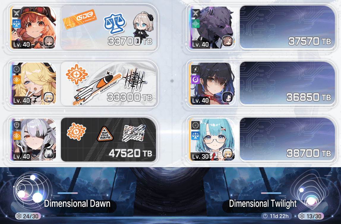 The nightmare is ongoing... >>544640829>Current Featured Banner/Upcoming BannerHaru - Striker - Justice - Until 11/12Yuki - Unknown - Unknown - Leaked/Expected around 11/12>Current Events/Upcoming ContentA Flickering Gleam on a Rusted Anchor - Until 11/12Galactic Calamity Seasonal content (Gives one 5* dupe of your choosing per season) - Expected around 11/12>Basic Guides and Introductionhttps://www.youtube.com/watch?v=B-0CaRtTTpQ https://www.youtube.com/watch?v=zDFkvOXO2Jg >Deck building simulatorhttps://czndecks.com/>PC Client (Stove)https://www.onstove.com/en/download>Reroll guidehttps://game8.co/games/Chaos-Zero-Nightmare/archives/559640>Reroll tipsReroll Beginner Banner for desired character, Standard banner to guarantee two 5 star start, or reroll for HaruYou have enough rolls to finish beginner banner and one 10 roll on limited banner (You can still luck yourself two 5 stars through beginner banner)>Cards aren't savingCards saving scales to chaos difficulty and if Deep trauma mode is on (purple icon on top right of chaos team formation)