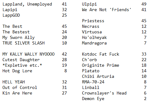>>544669047>Exu2>Ulpi>Lemuen (if you are actively using her)>Ines>the rest