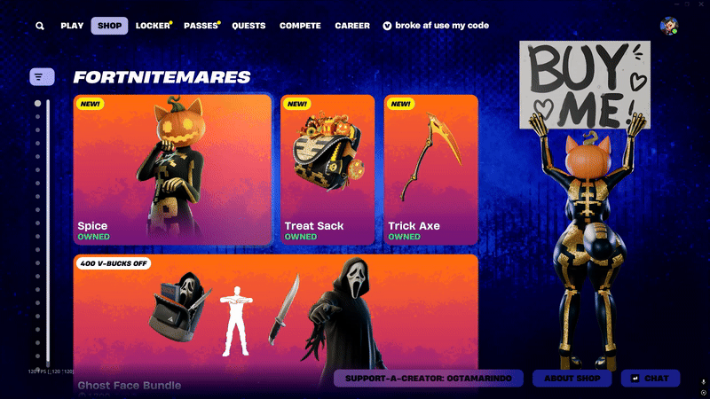The guy I've been SACing got Fortnitemare stuff.https://www.youtube.com/watch?v=LT2-xgHYPikhttps://www.youtube.com/watch?v=MFMjsY-UQ48