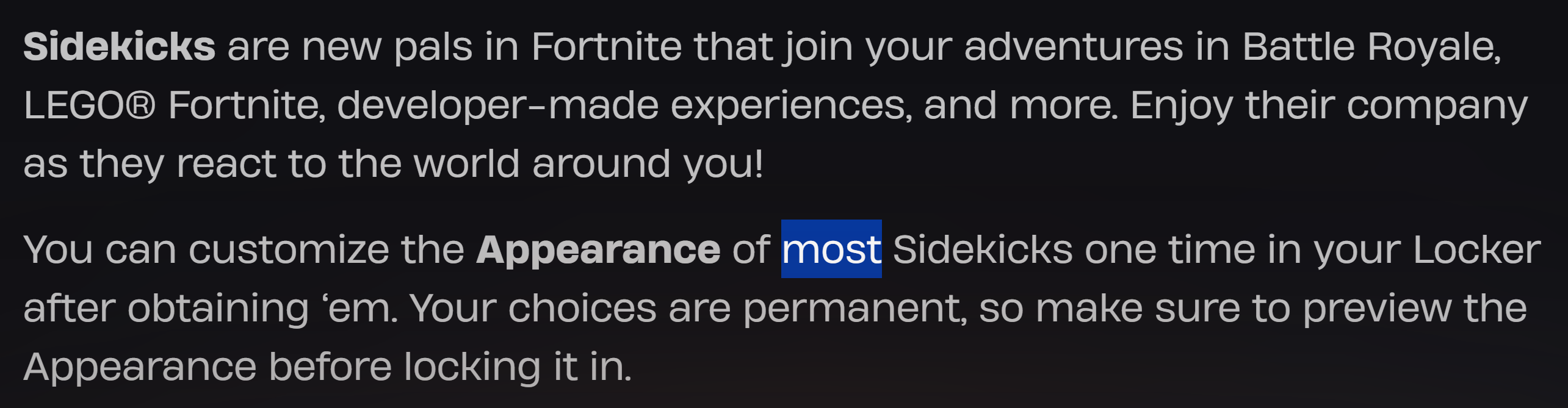 >>544676417>whats the point of buying edit styles when they are permanent? in regards to what we KNOW, the only answer we currently have is different names. maybe someone will really want to larp in their locker with their litter of peelypuppies, all of whom have some autistic backstory>also don't forget sidekick EMOTESthis was worded vaguely. either theyll have paid emotes, or theyll have a set of animations that are tied to specific emotes that the player does. for example, the raptor does the egg juggle emote with any sports emote, does a generic dance with anything with the dance tag, etc