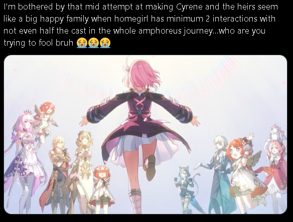 Remember that everyone hate Cyrene because they keep forcing that she 'cared' about CH despite not having any on-screen interactions with them