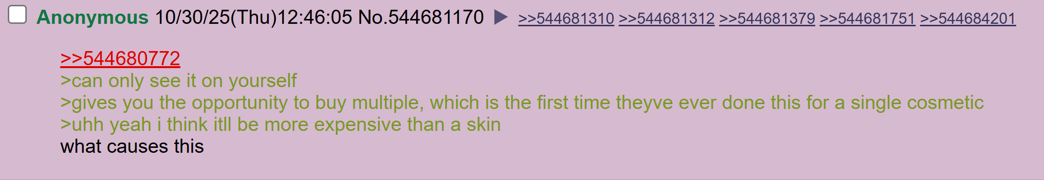 >>544711548Couldn't care less just like kicks, I hope epic get absolutely blasted like they did cars and instruments with that bullshit about having to buy another pet to change it's damn outfit.