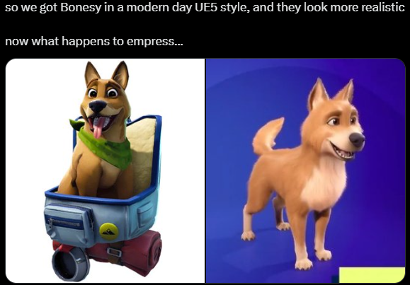 >>544711548>any honest thoughts about them?will not use them, just like car cosmetics and shoe cosmetics. i only care about who i play as, not what kind of fucking car they drive or pet they ownit would be really generous of epic to eventually convert every pet from chapter 1 into a companion and give them to the backbling owners for free, but i have a veryyyyy strong inkling that bonesy will be the only freebie out of goodwill, especially if the pet models get heavily updated when converting to companions