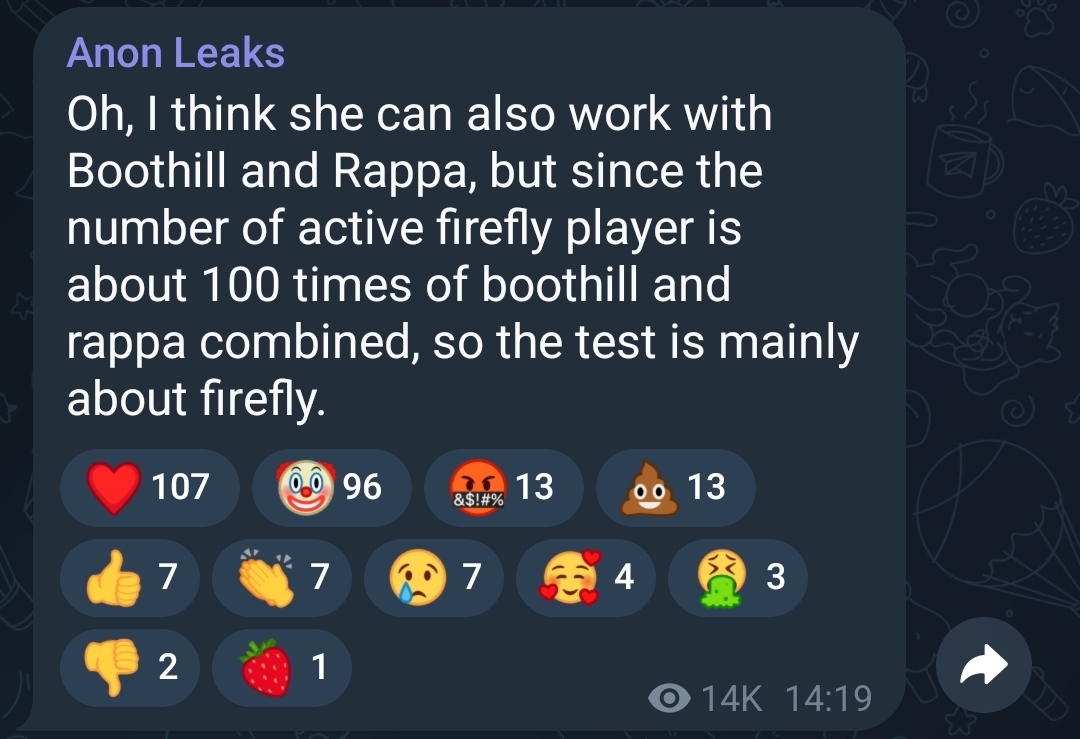 >>544762035Unironically blame the Fireflypags. They're the reason nothing is being leaked about 3.8