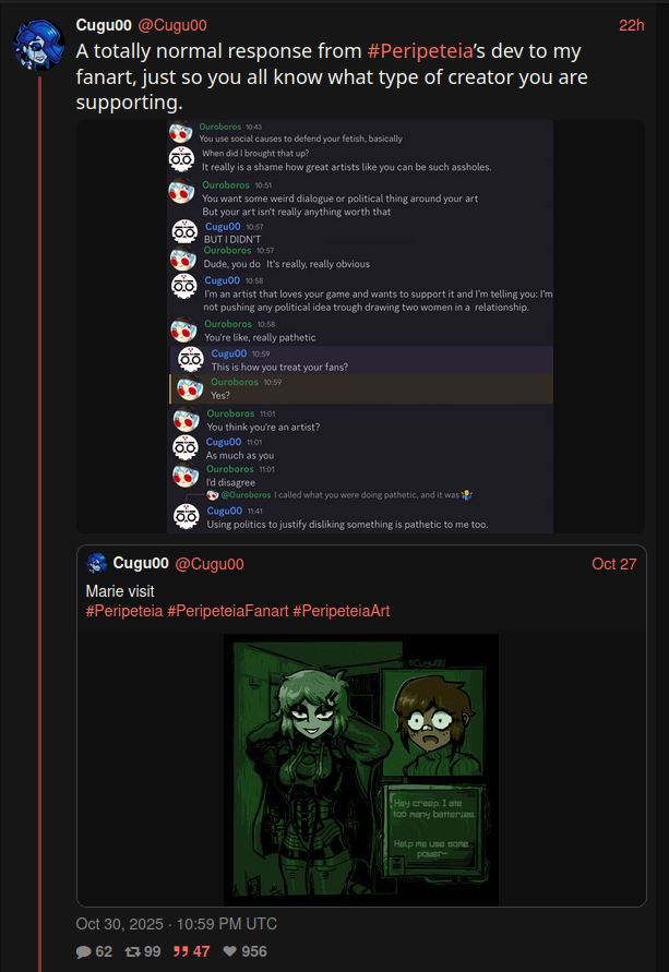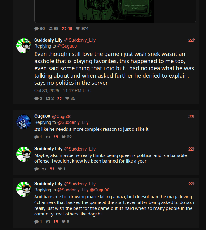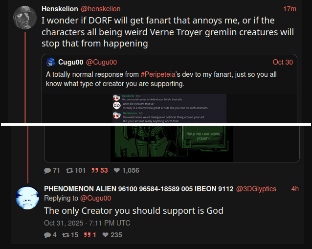 Nobody fears you. Even as a shitpost or a joke, you say this so often that it's obvious you actually wish you were powerful enough to terrorize people. This is not normal or healthy for someone who is supposed to be creative like a gamedev.