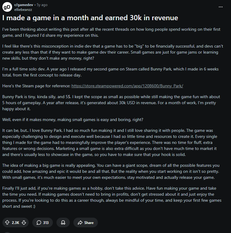 after all was said and done it put 30k in his bank account. how much have you made from gamedev?