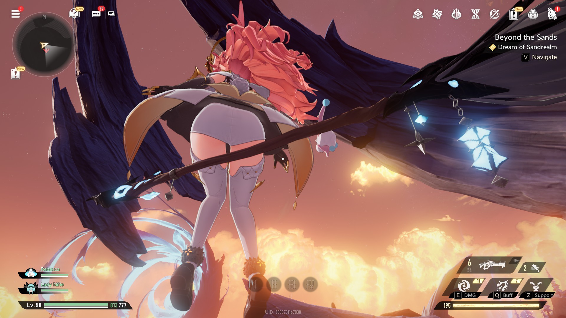 Her aoe is pretty bad from what I've seen. She's really just a buff bot for Lynn. Give her the bow that buffs on crit the sanity regen wedge and a bunch of efficiency.