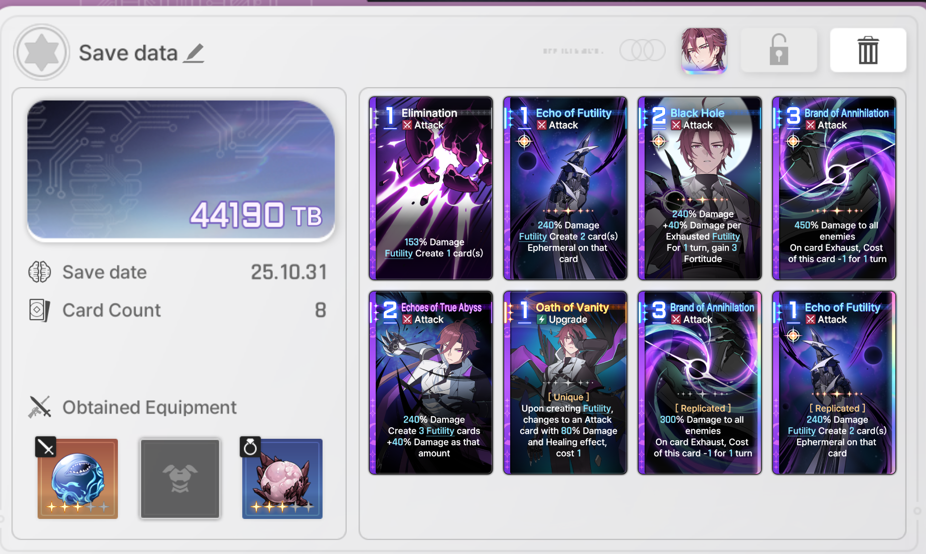 >>544793858>Only equip gear that has actual value to you, don't randomly upgrade cards, don't dupe cards randomly without a plan in mind.Hey, that actually explains a lot of stuff. Thanks.