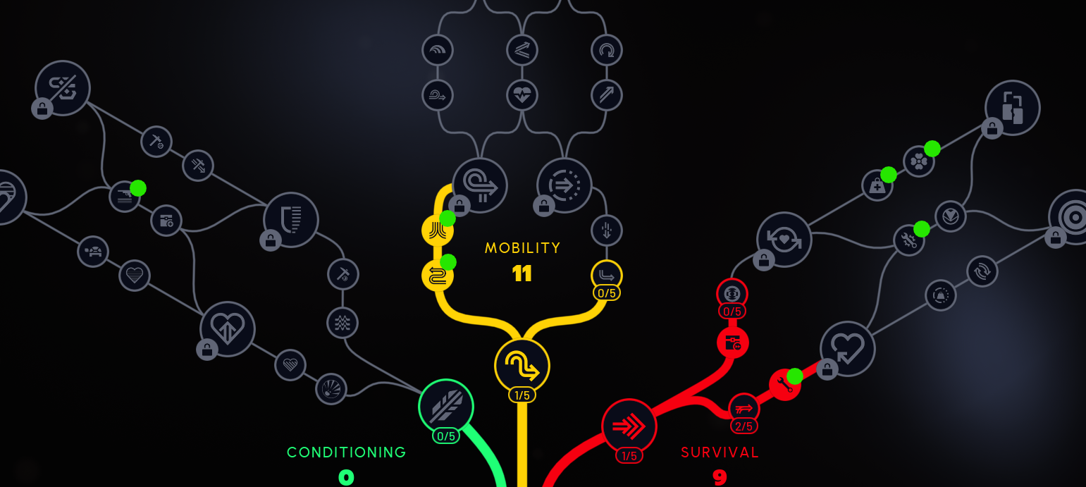>>544808343I started going into stamina but I'm starting branch out into mobility and conditioning. Someone brought up a good point about stamina so marathon seems good to dump so skillpoints into