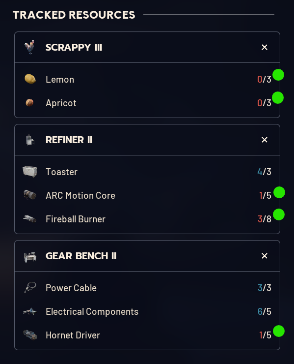 will trade people high value items if you have these stacks>3/3 lemons>3/3 apricots>4 hornet drivers>4 arc motion cores