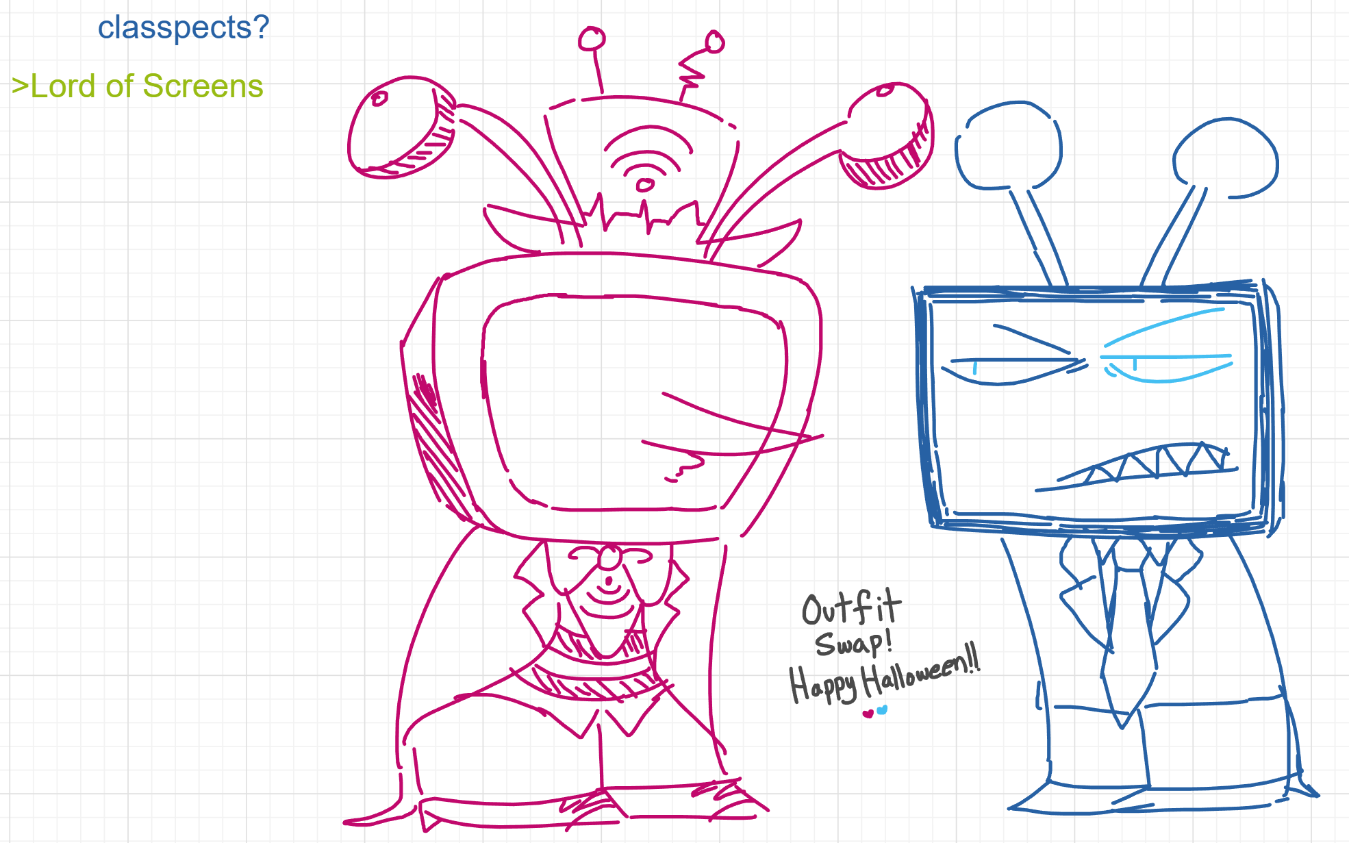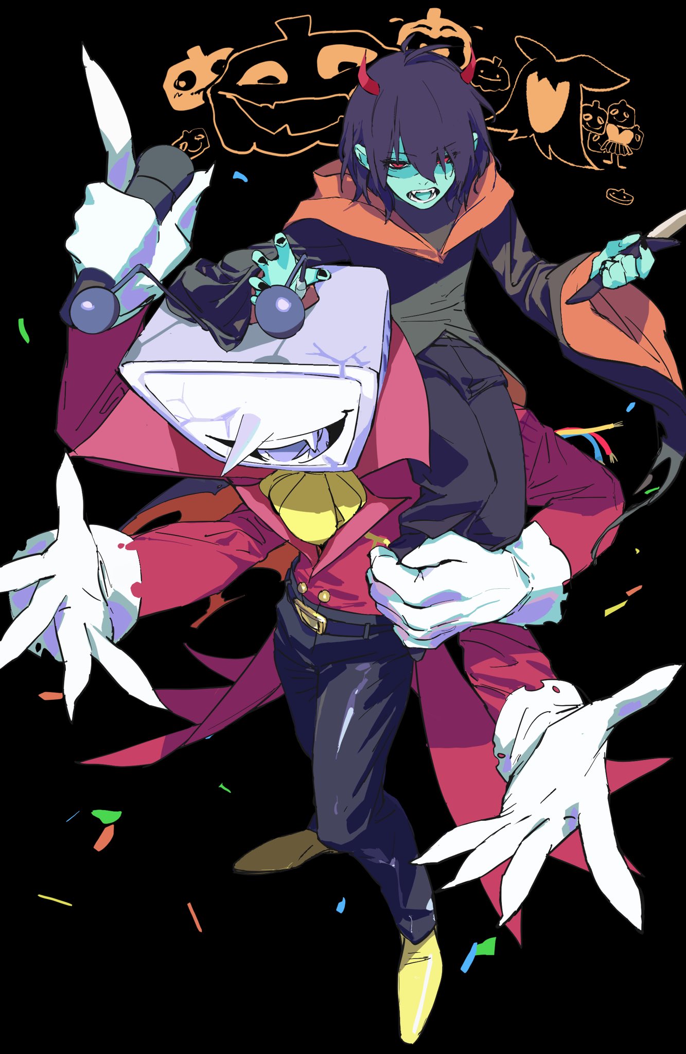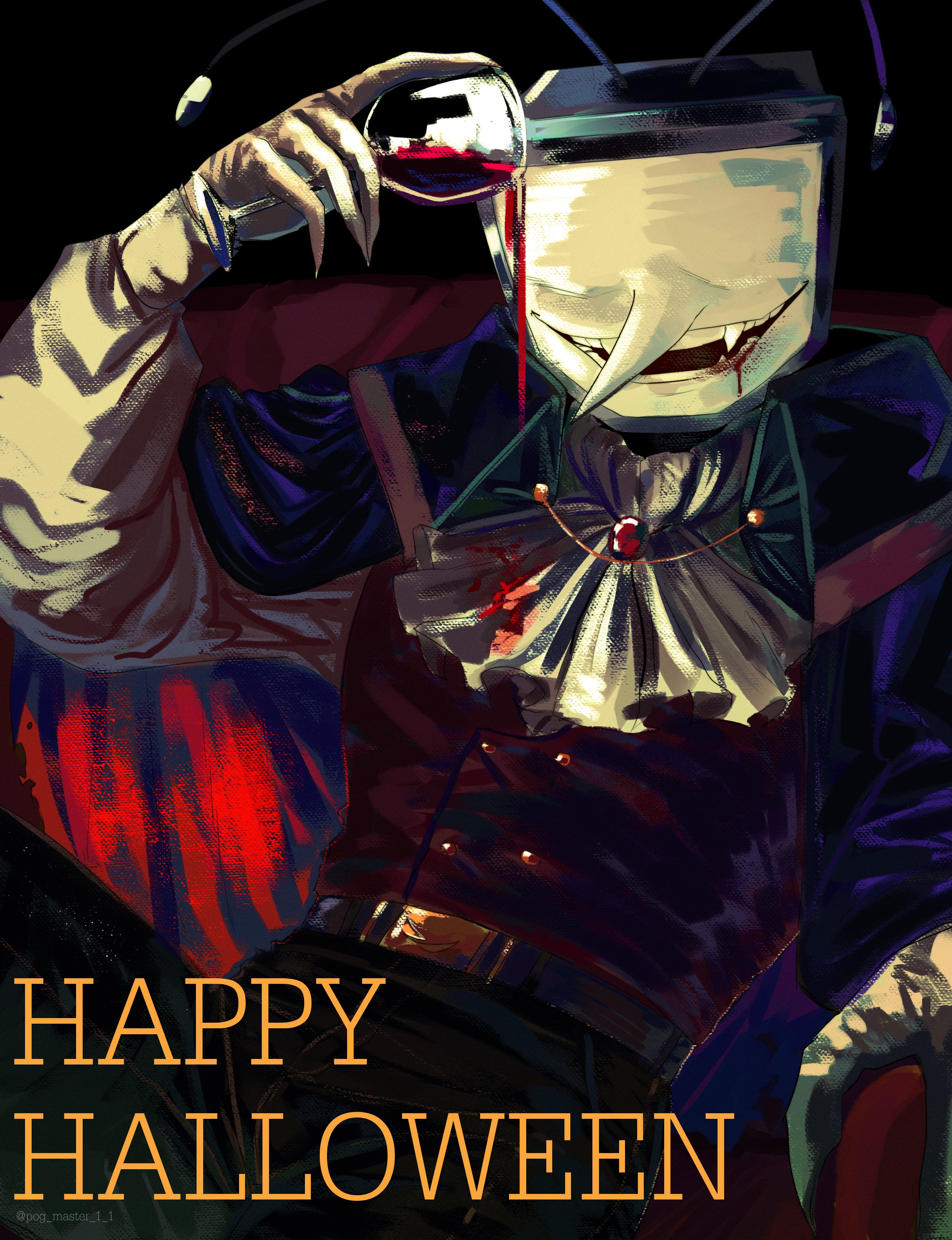 happy halloween! to celebrate, i snuck into a random fujo's room and shoved black dye up her cooter so when she discharges over big nose men again it'll be black and spooky like chara drool!!!!!