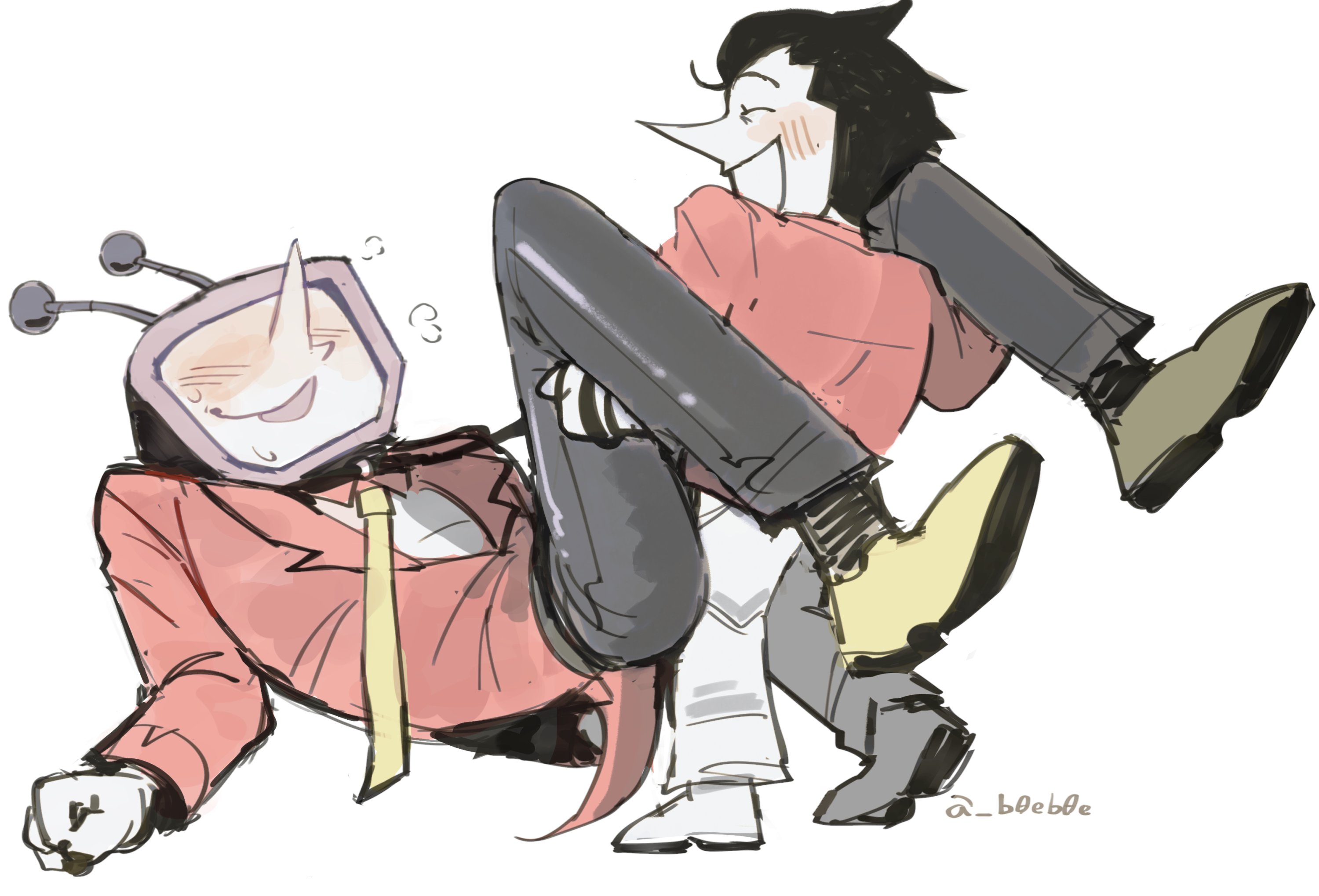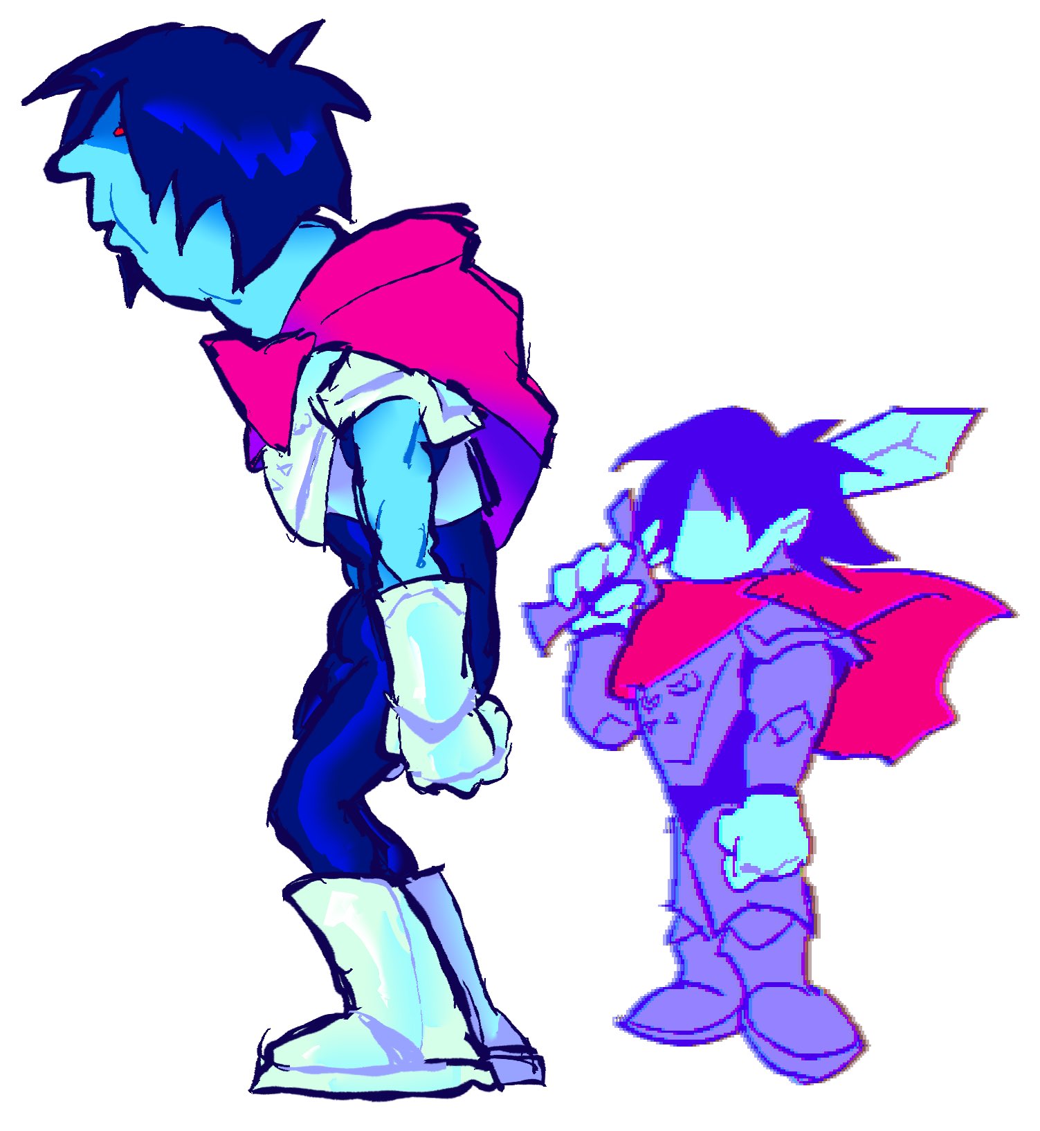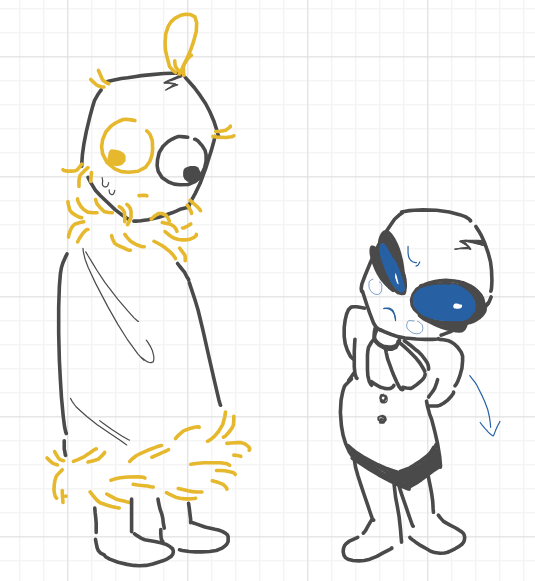 >>544820368So a backstory I've been planning for Selif was that him and Deesix were childhood friends. Dee would regale Selif with stories of grand adventures and Selif would 100% believe him. One day, the 2 went on an adventure together and got chased by some kinda giant monster. That was when Selif tripped and got injured. He reached out to Dee, who didn't stop to help and kept running away.With the creature approaching, he looked for a hiding spot and fell down a hole and that's when he witnessed t̶̝̃̋͌h̴̡̟̼͕̎̕͝ͅẹ̸̖̳̞́̔́͌͘ ̴̟̈́h̶̩̘̮͖̀͐ò̸̟͖͚́̋̊r̵̛̛̝͐r̵̞̯̤̥͉̊̌͊̀ọ̸̩͈͐̃͘͘͝r̷̝͛̂ş̴͕̀͜Because of this incident, after Selif returned they never really approach Dee anymore, and Dee tries to avoid Selif out of regret/to avoid acknowledging that he was partially responsible for what happened.I haven't decided on this being canon yet, it depends on if Deesix anon is ok with it and if you guys feel it makes sense.
