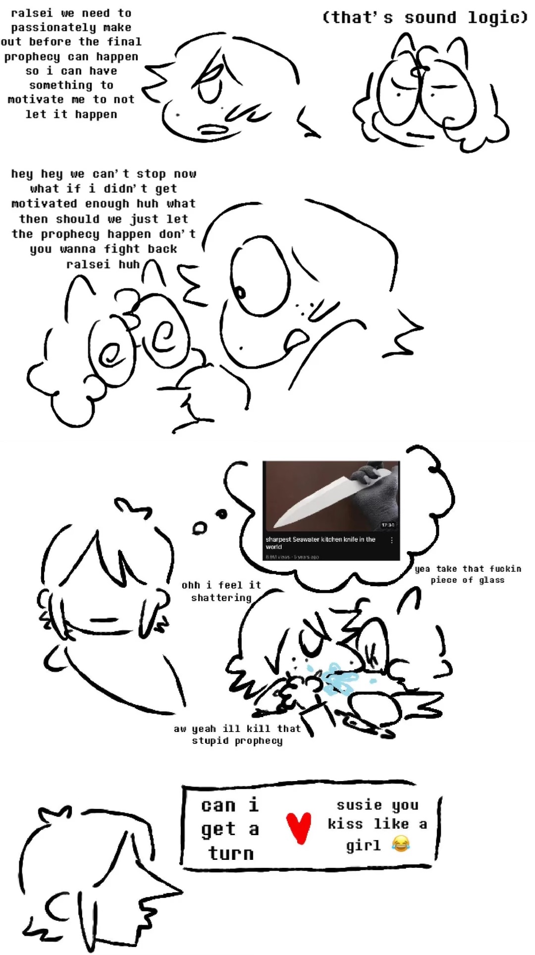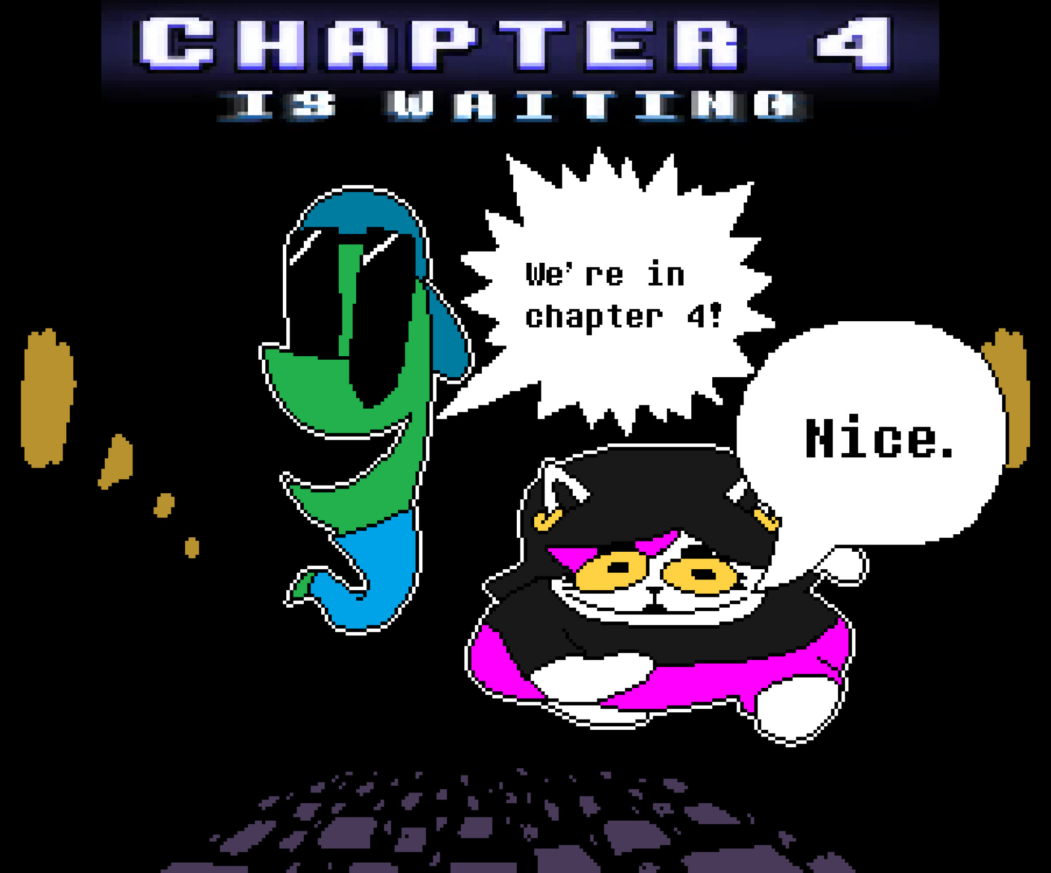 Old Friend EditionPrevious Blood filled thread: >>544784289 Spoilers ahead, proceed at your own Frisk.-DELTARUNE CHAPTER 1-4>https://store.steampowered.com/app/1671210/DELTARUNE/-The Old Game>https://undertale.com-The Old Game's Demo>https://undertale.com/demo-The New Game>https://deltarune.com-The New Game's Progress>https://toby.fangamer.com/newsletters/>https://deltarune.com/#news>https://www.twitlonger.com/show/n_1sqn3p9-Merch>https://www.fangamer.com/collections/undertale>https://www.fangamer.com/collections/deltarune-Books-Undertale Artbook>https://pastebin.com/1MRmU0Gk-Legends of Localization - Undertale>https://pastebin.com/DkZaXMpi-Extra Content>https://undertaleqa.tumblr.com>https://undertale.com/alarmclock>https://deltarune.com/sweepstakes/>https://toby.fangamer.com/newsletters/-Undertale/Deltarune Text Dumps & Screenshots>https://pastebin.com/WG9u1fvH-Undertale Image Collections>https://pastebin.com/g2JqH6Ba-Booru (newly resurrected, please help tag)>https://utg.vidya.pics/-Recommendbin>https://pastebin.com/fsqd5Sa6-Writebins>Current: https://docs.google.com/document/d/1ZaYVvltQ_Rmf-ggszf1bwmYDW2NUcfpTYU7JzfyMhVE>Old: https://writebin.surge.sh-Comicbin>https://pastebin.com/UJpBYSEE-Fangamebin>https://archive.is/iSiFg-/vg/ League team>https://implyingrigged.info/wiki//utg/-Current whiteboard: https://r8.whiteboardfox.com/86570313-0062-4425-Previous whiteboard: https://r9.whiteboardfox.com/95420687-3343-1904-Magma: https://magma.com/d/QiFH9rWyRh-WorldOfText: https://www.ourworldoftext.com/utg-Wanna change the font?>https://rentry.org/utg-font-Thread Template>https://pastebin.com/rTN8SxAw