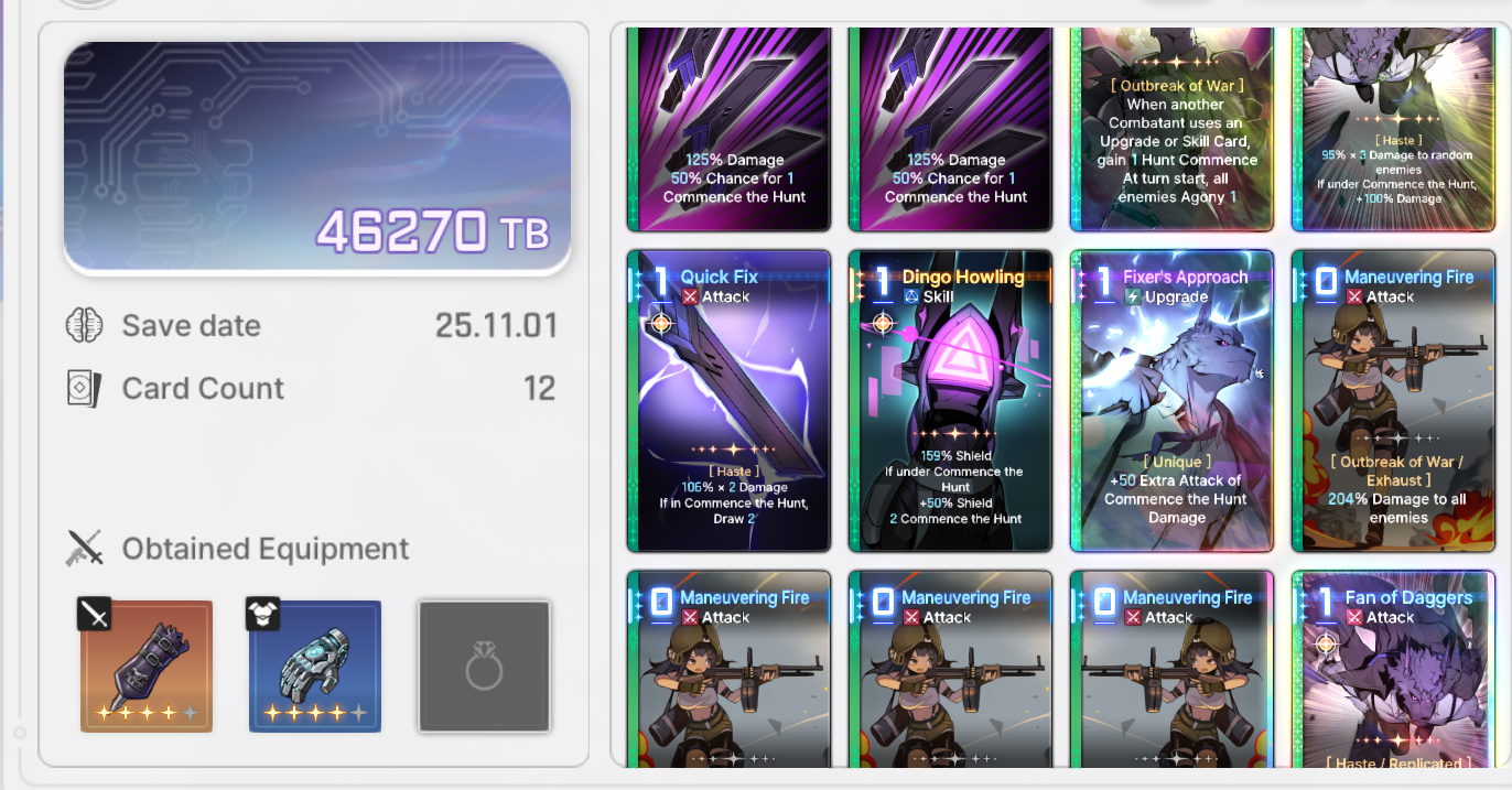 >>544854741Mia and Cassius. I always aim to get the epiphany that discards her hand to create more bullets so I can replicate the funny bullet spam.