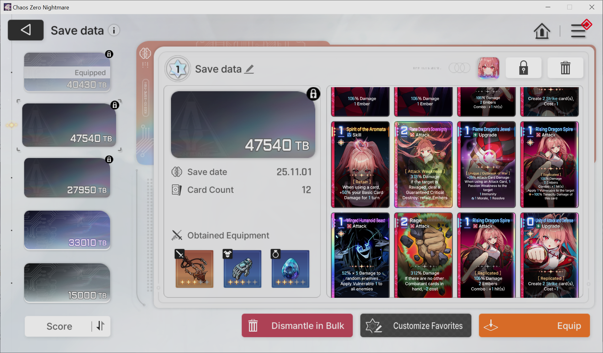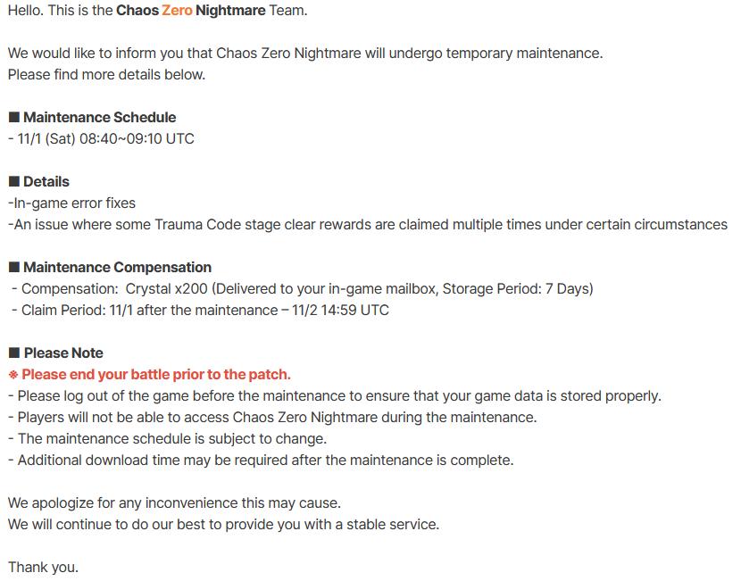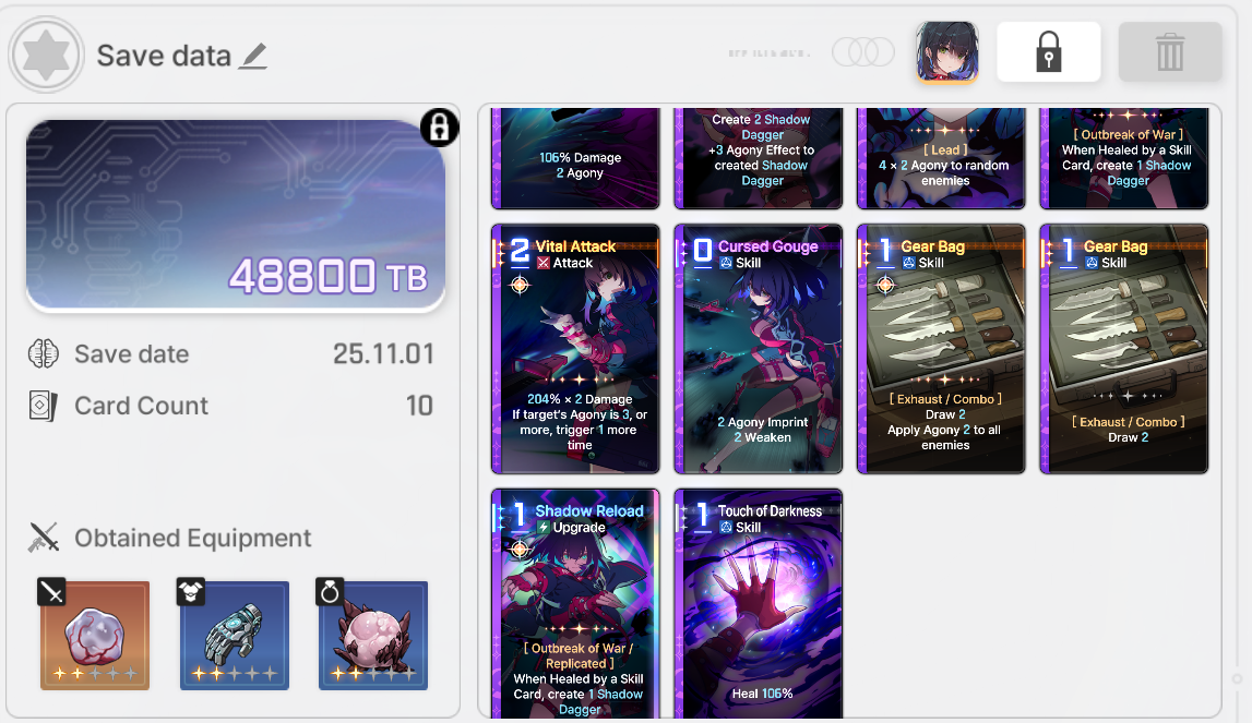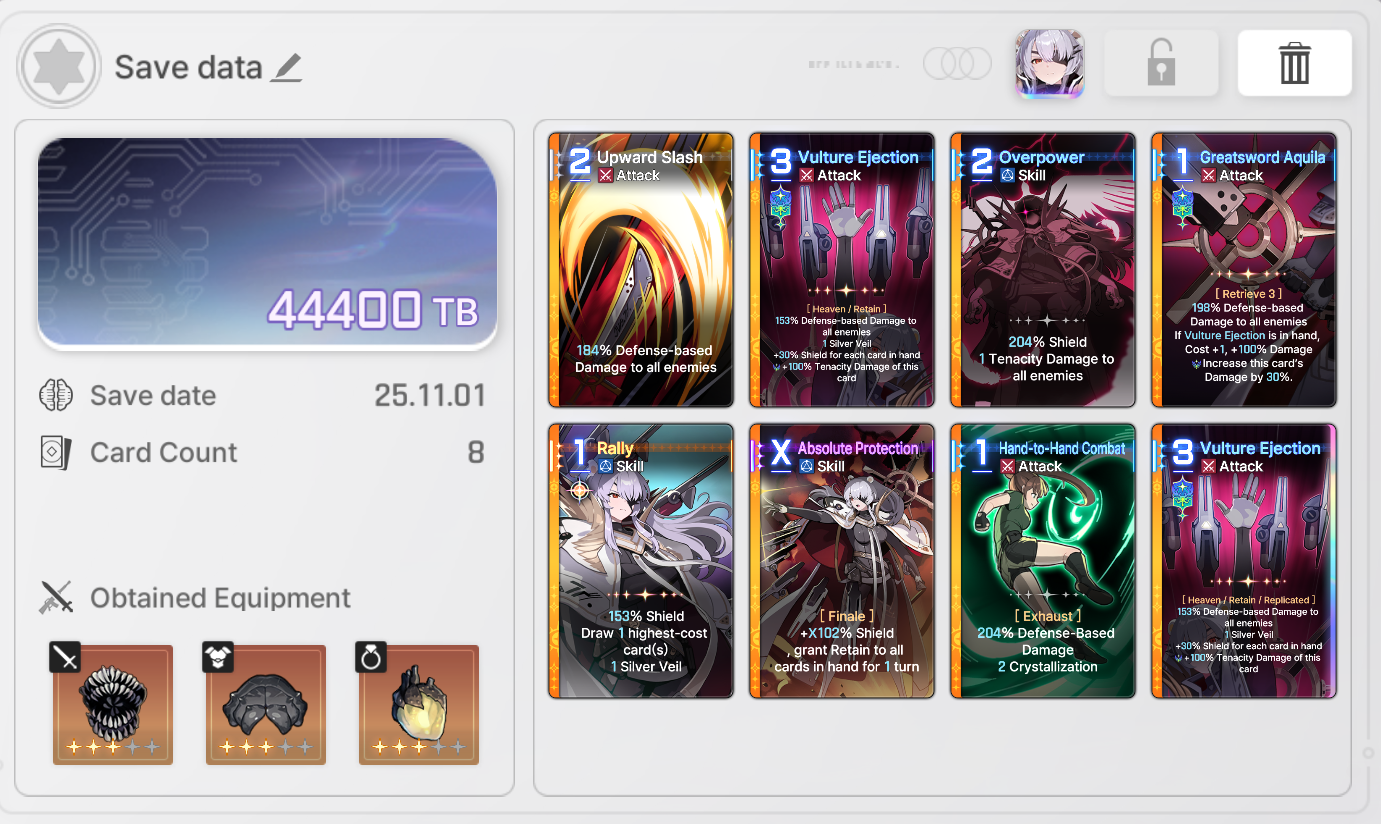 The nightmare is ongoing...>>544788094>Current Featured Banner/Upcoming BannerHaru - Striker - Justice - Until 11/12Yuki - Unknown - Unknown - Leaked/Expected around 11/12>Current Events/Upcoming ContentA Flickering Gleam on a Rusted Anchor - Until 11/12Galactic Calamity Seasonal content (Gives one 5* dupe of your choosing per season) - Expected around 11/12>Basic Guides and Introductionhttps://www.youtube.com/watch?v=B-0CaRtTTpQhttps://www.youtube.com/watch?v=zDFkvOXO2Jg>Deck building simulatorhttps://czndecks.com/>PC Client (Stove)https://www.onstove.com/en/download>Reroll guidehttps://game8.co/games/Chaos-Zero-Nightmare/archives/559640>Reroll tipsReroll Beginner Banner for desired character, Standard banner to guarantee two 5 star start, or reroll for HaruYou have enough rolls to finish beginner banner and one 10 roll on limited banner (You can still luck yourself two 5 stars through beginner banner)>Cards aren't savingCards saving scales to chaos difficulty and if Deep trauma mode is on (purple icon on top right of chaos team formation)