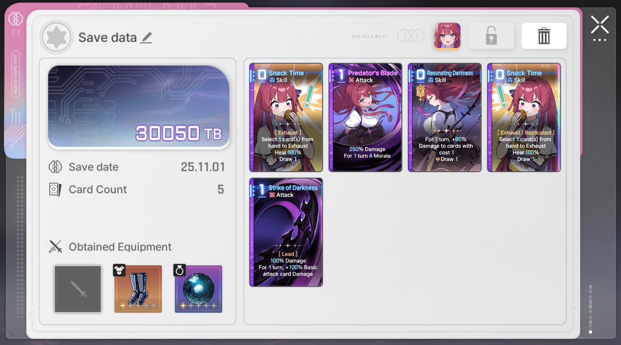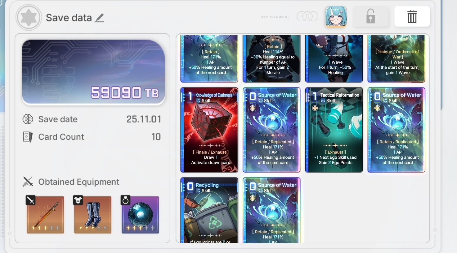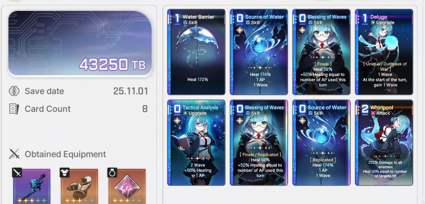 The nightmare is ongoing...>>544788094>Current Featured Banner/Upcoming BannerHaru - Striker - Justice - Until 11/12Yuki - Unknown - Unknown - Leaked/Expected around 11/12>Current Events/Upcoming ContentA Flickering Gleam on a Rusted Anchor - Until 11/12Galactic Calamity Seasonal content (Gives one 5* dupe of your choosing per season) - Expected around 11/12>Basic Guides and Introductionhttps://www.youtube.com/watch?v=B-0CaRtTTpQhttps://www.youtube.com/watch?v=zDFkvOXO2Jg>Deck building simulatorhttps://czndecks.com/>PC Client (Stove)https://www.onstove.com/en/download>Reroll guidehttps://game8.co/games/Chaos-Zero-Nightmare/archives/559640>Reroll tipsReroll Beginner Banner for desired character, Standard banner to guarantee two 5 star start, or reroll for HaruYou have enough rolls to finish beginner banner and one 10 roll on limited banner (You can still luck yourself two 5 stars through beginner banner)>Cards aren't savingCards saving scales to chaos difficulty and if Deep trauma mode is on (purple icon on top right of chaos team formation)