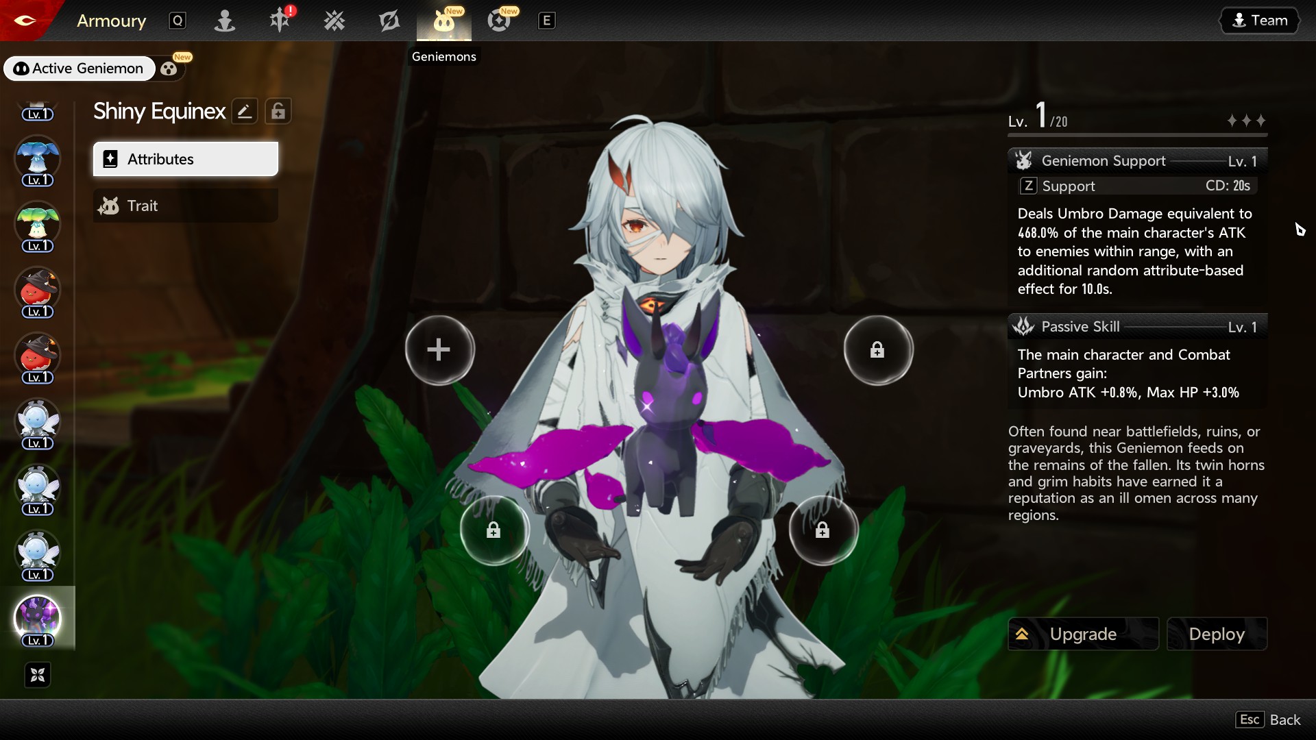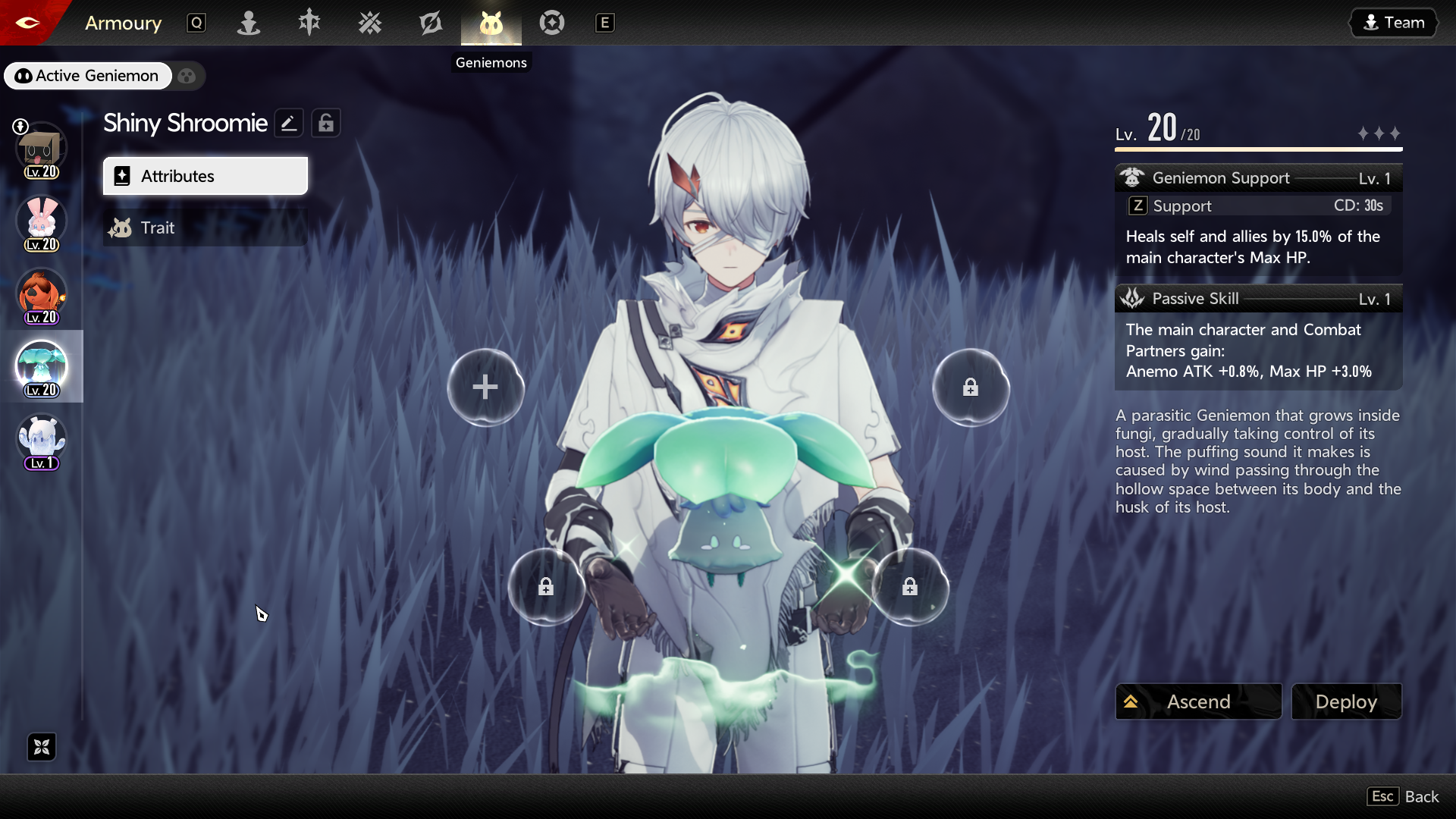I didn't know about geniemon traits, but considering I have the golden trait that increases drop rate lit up I probably used the geniemon that had it as level up fodder.