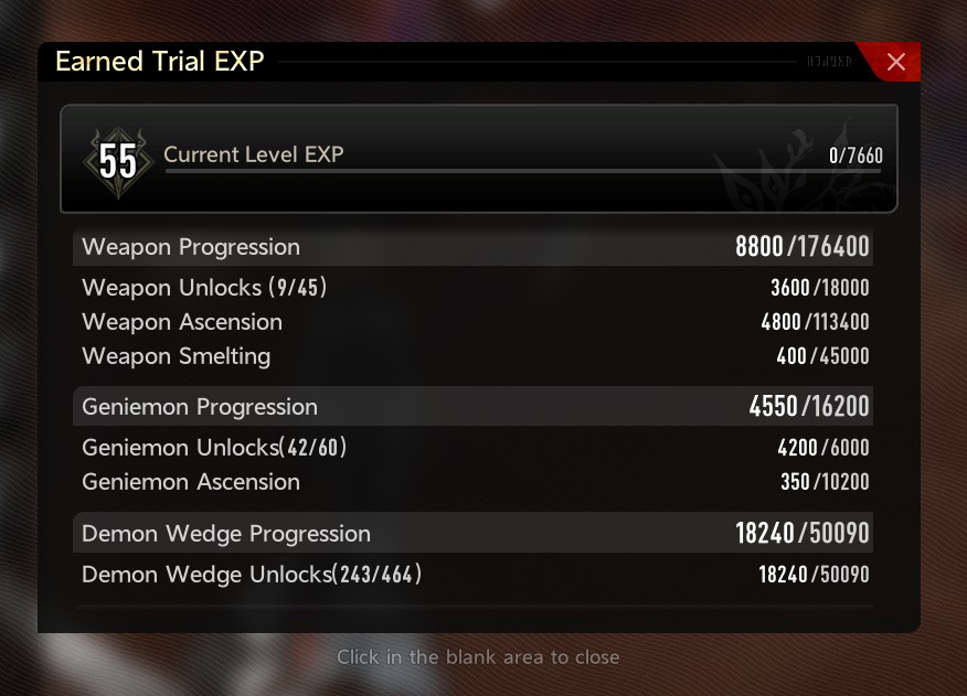 The biggest exp boost is getting/crafting the gold demon wedges, they're like 400 exp each.