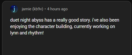 Previous: >>544837861>Epic Games Storehttps://store.epicgames.com/en-US/p/duetnightabyss-016366>Steam (delayed)https://store.steampowered.com/app/3950020/Duet_Night_Abyss/>Websitehttps://duetnightabyss.dna-panstudio.com/#/home>Twitterhttps://x.com/DNAbyss_EN>Duet Night Abyss | Global Launch Special Program[YouTube] Duet Night Abyss | Global Launch Special Program>Characters & Weapons19 playable characters and 45 melee/ranged weapons — all available for free!>CodesDNARELEASEDNALAUNCHDNAFREEPLAYDNA1028DNABYSSGIFTDNAGIFTDNALIVEDNAGLOBALEPICGAMESDNADENAABINIJI>Twitch Dropshttps://duetnightabyss.dna-panstudio.com/twitchdrops/en/>Polls>Serverhttps://poal.me/sasxa5>MChttps://poal.me/chnc9z>Mainhttps://poal.me/1ekaha>VOhttps://poal.me/tqye89>/dna/ OP pastebin (use this if making new thread):https://pastebin.com/5pbPRzEP