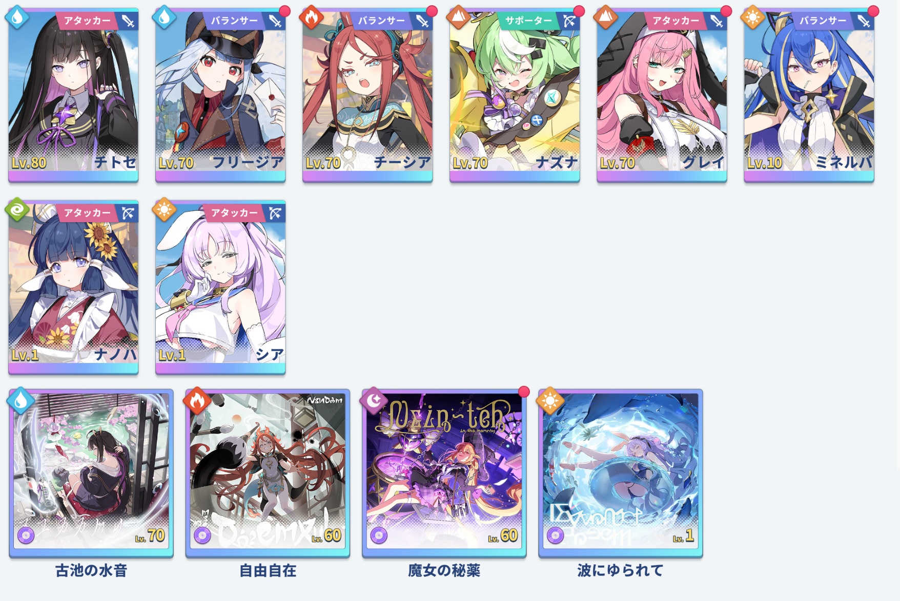 >>544940134I have the same SSRs as you except missing Freesia. It's stellover