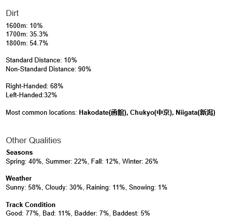 >>544929842Japan hates dirt so they're not going to make team trials 4 turf 4 dirt. Having dirt be all possible length types would suck for consistency.