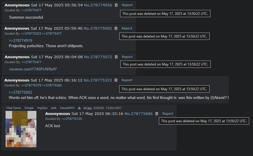 >>544935857>>544935853>>544936025>>544936030>>544936009>everyoneYou are not everyone. Your posts stand out a lot.>screaming about "ack">self insert harem shit>cracks shipping yuriThose are your posts. Nothing else.>attwReally rushing to samefag, huh?