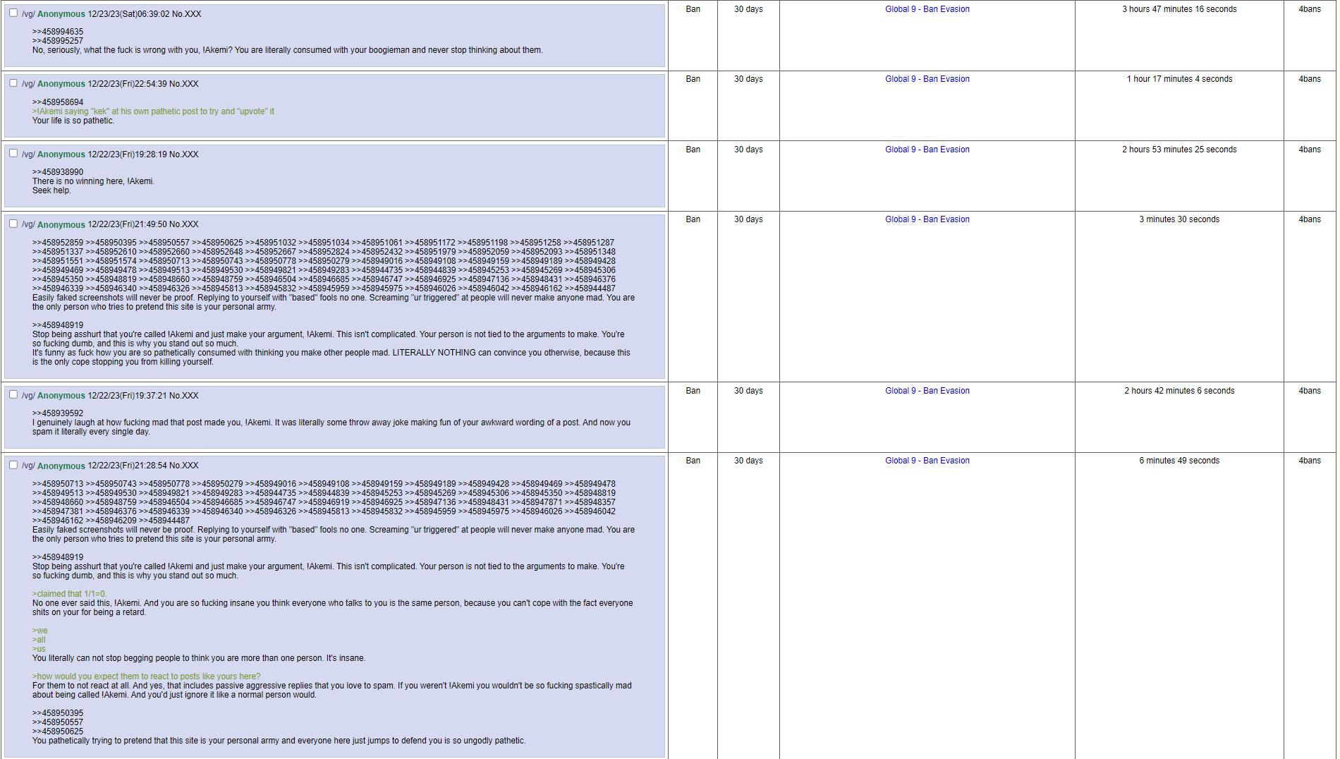 >>544948907>>544948823>>544948720>>544949510>>544949603I genuinely can not fathom how you fucked your life up so badly that you think it's normal to make thousands and thousands of post A WEEK about a "single" other poster on 4chan, all because you're mad you are told to stop shitposting.No one listens to anything you say. No one just agrees with you because you posted a link.