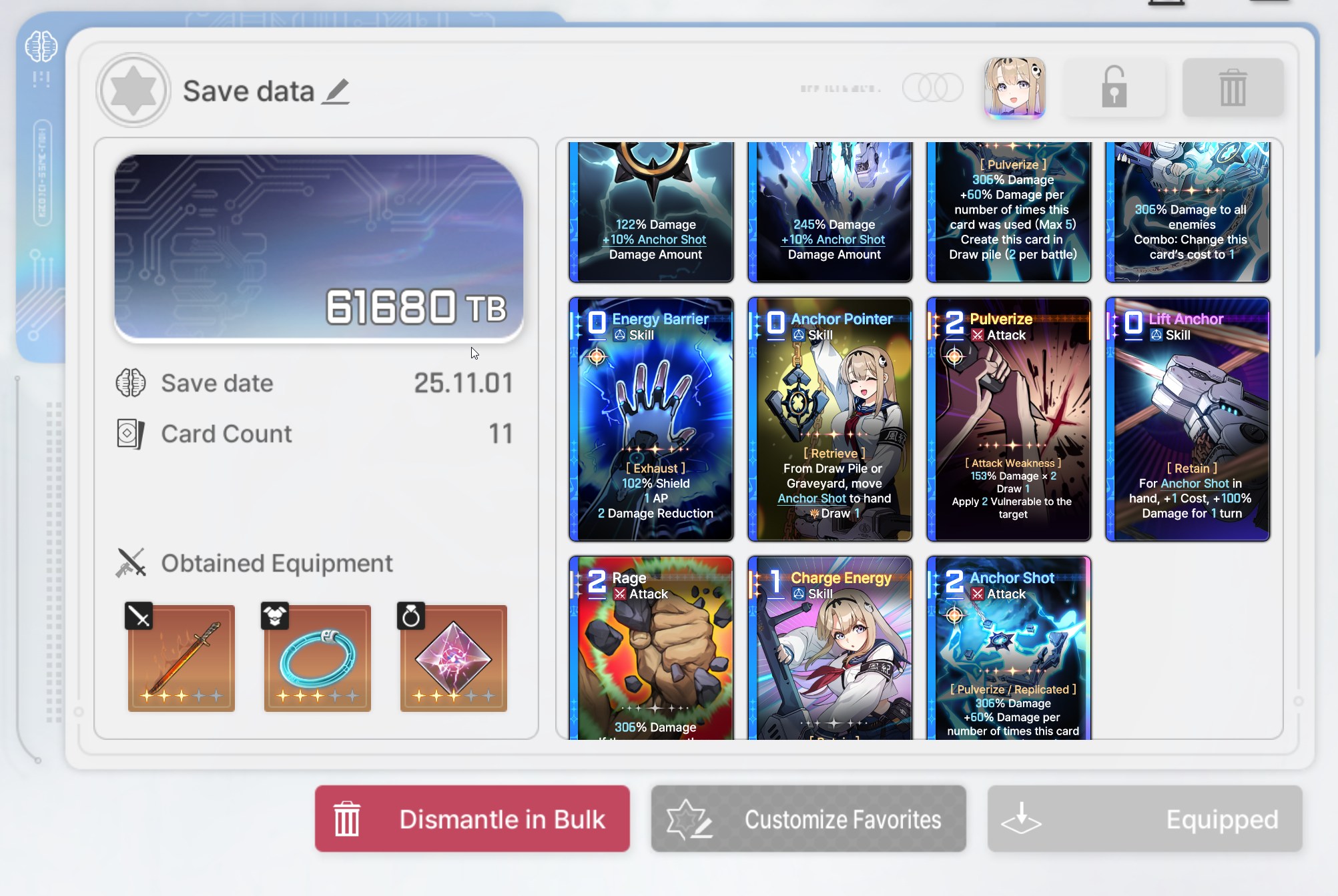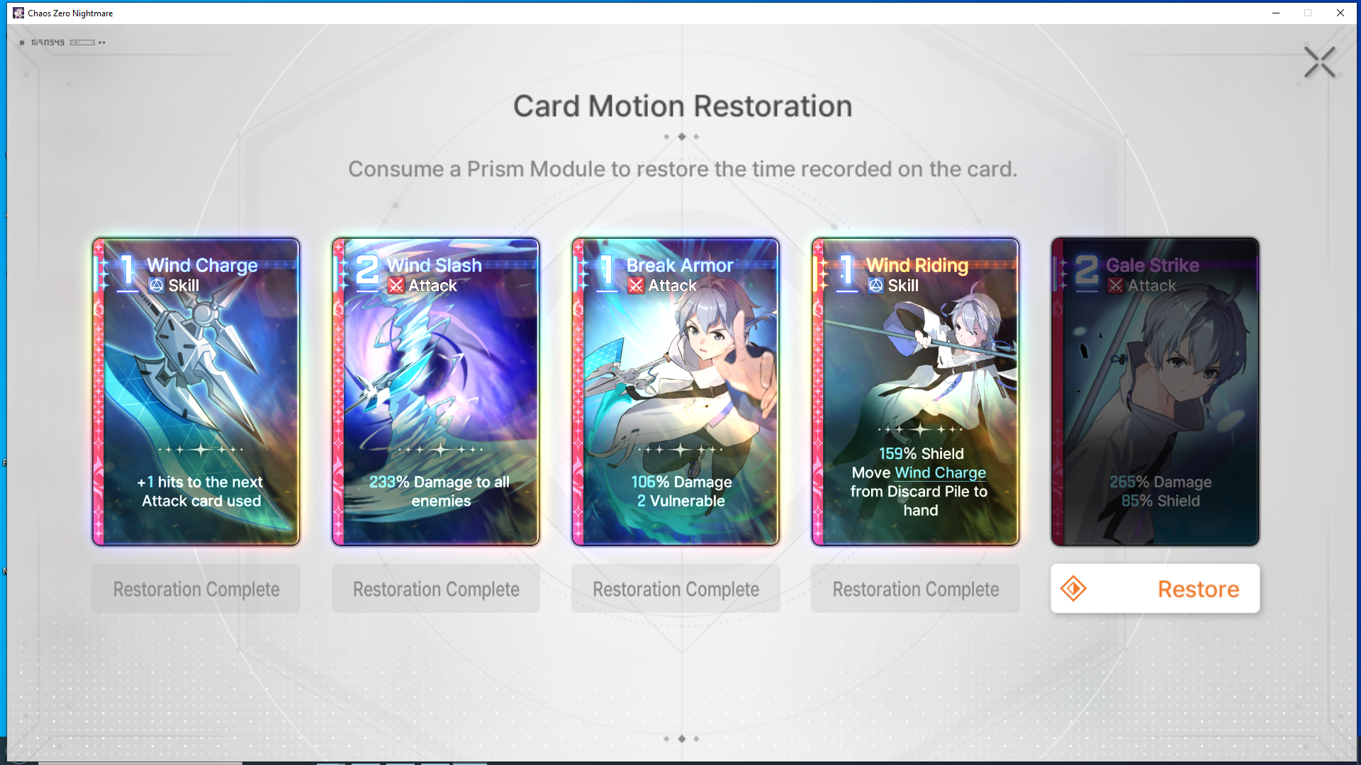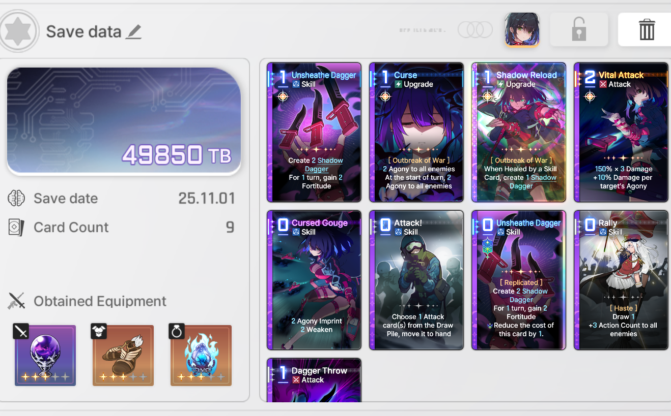 The nightmare is ongoing... >>544892210>Current Featured Banner/Upcoming BannerHaru - Striker - Justice - Until 11/12Yuki - Unknown - Unknown - Leaked/Expected around 11/12>Current Events/Upcoming ContentA Flickering Gleam on a Rusted Anchor - Until 11/12Galactic Calamity Seasonal content (Gives one 5* dupe of your choosing per season) - Expected around 11/12>Basic Guides and Introductionhttps://www.youtube.com/watch?v=B-0CaRtTTpQhttps://www.youtube.com/watch?v=zDFkvOXO2Jg>Deck building simulatorhttps://czndecks.com/>PC Client (Stove)https://www.onstove.com/en/download>Reroll guidehttps://game8.co/games/Chaos-Zero-Nightmare/archives/559640>Reroll tipsReroll Beginner Banner for desired character, Standard banner to guarantee two 5 star start, or reroll for HaruYou have enough rolls to finish beginner banner and one 10 roll on limited banner (You can still luck yourself two 5 stars through beginner banner)>Cards aren't savingCards saving scales to chaos difficulty and if Deep trauma mode is on (purple icon on top right of chaos team formation)Reminder to READ your cards and to ignore seaniggers, salesfags, and cuckposters