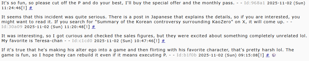 >>544980329>I just saw the drama just right now and there's no problem until the cuckening of Owen on ledditActually, Arcalive (Korean message board) did a deep dive that went into the development of CZN, and they're the ones who found out all the rewrite stuff that the thread was posting about yesterday. Then, the day after it was posted on Arcalive, the director went live and did an apology stream where he confirmed that all of the rumors are true and that they're going to rewrite the story and give out apology pulls in compensation for the duplication glitch.