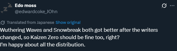 >>544980940I didn't say it's one single user. In my OP I said there's going to be a general sentiment that they're making the game worse to bend the knee to korean incels.The game was successful. 2x what Stella Sora made with 1/50th the budget. It's not those incels who made it successful, as they're just complaining and not spending money.Those incels aren't going to spend money because they're rewriting the story for them. They're just trolls that wanted to cause chaos. But the people who spent money already are now going to spend none/less.